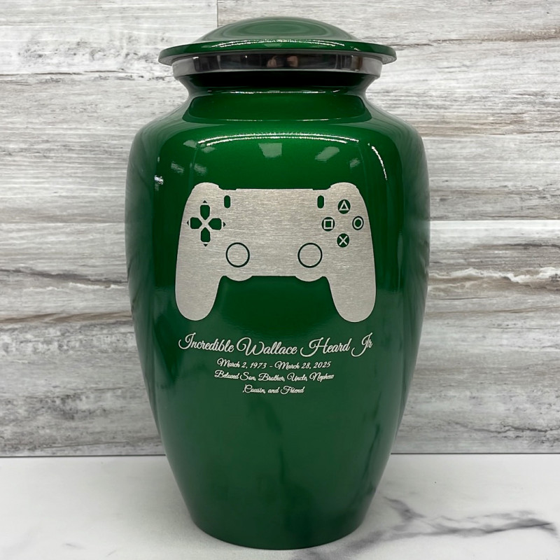 Gaming Controller Cremation Urn - Midnight Blue Gaming Controller Cremation Urn - Gunmetal Gray Gaming Controller Cremation Urn - Purple LusterSizes