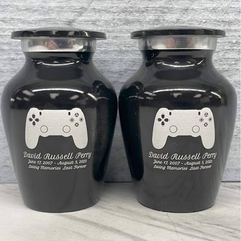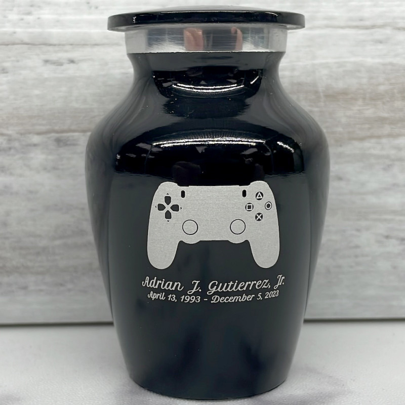 Choose a Gaming Controller Keepsake Urn to create an intimate and personal memorial for family members or close friends. Bold, attractive colors offer sharp contrast with the engraved text and artwork.