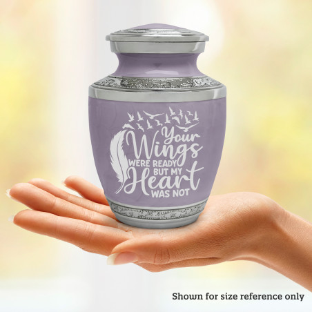 Select Going Home Sharing Urn - Regal Purple to create a personal memorial that is a step larger than a keepsake urn but more petite than a full size urn. Bold, attractive colors offer sharp contrast with the engraved text and detailed artwork.
