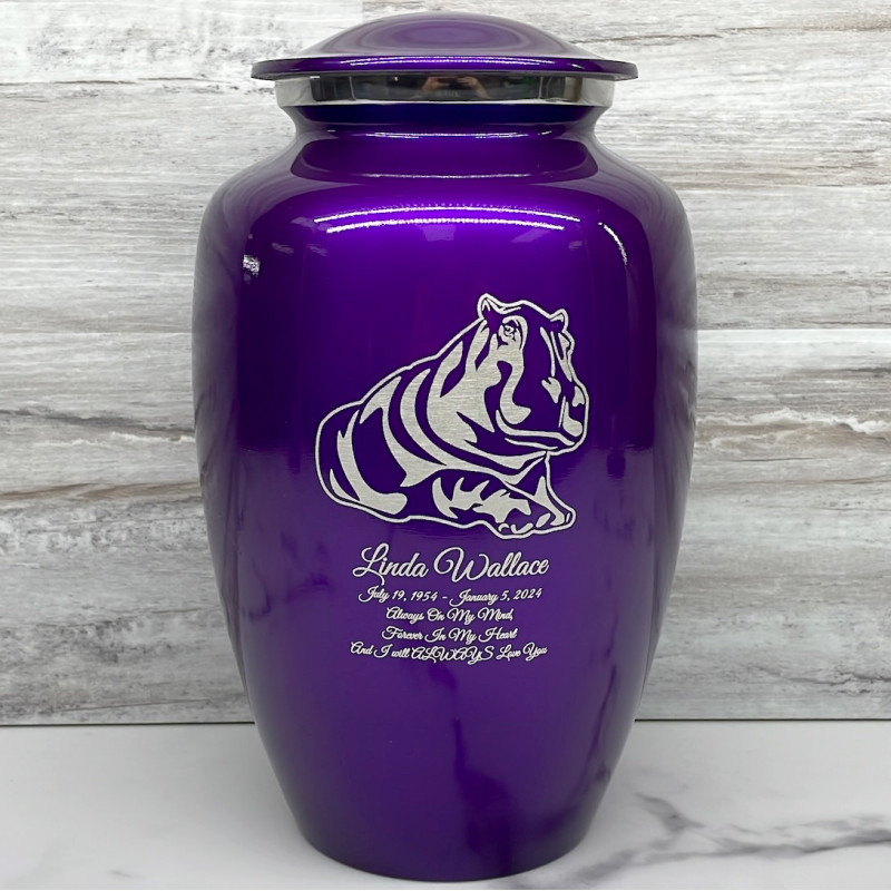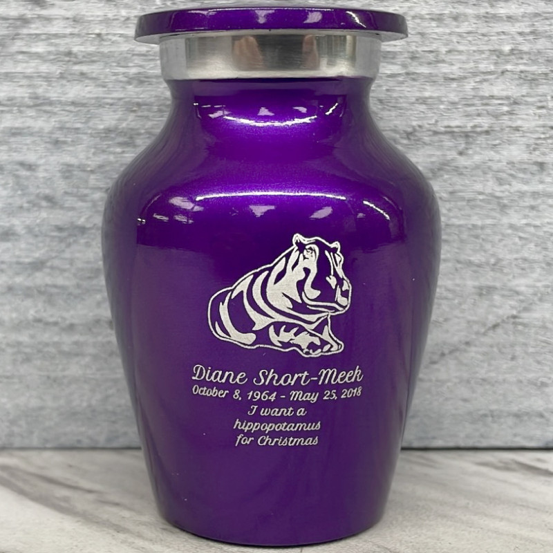 Choose a Hippo Keepsake Urn to create an intimate and personal memorial for family members or close friends. Bold, attractive colors offer sharp contrast with the engraved text and artwork.