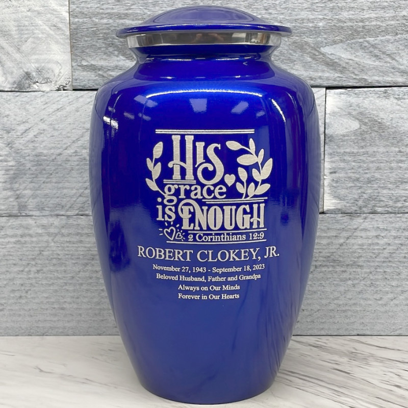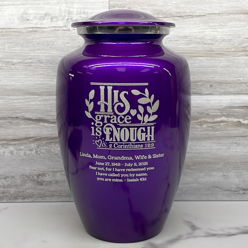 His Grace Is Enough Sharing Urn - Midnight Blue His Grace Is Enough Sharing Urn - Gunmetal Gray His Grace Is Enough Sharing Urn - Purple Luster His Grace Is Enough Sharing Urn - Shamrock GreenHis Grace Is Enough Sharing Urn - Ruby Red