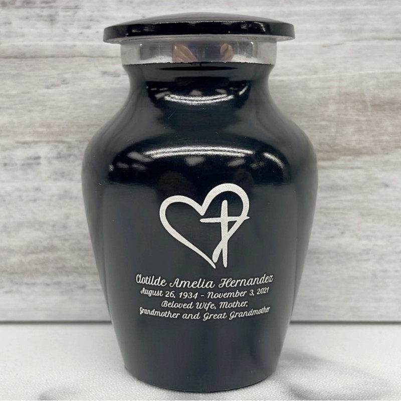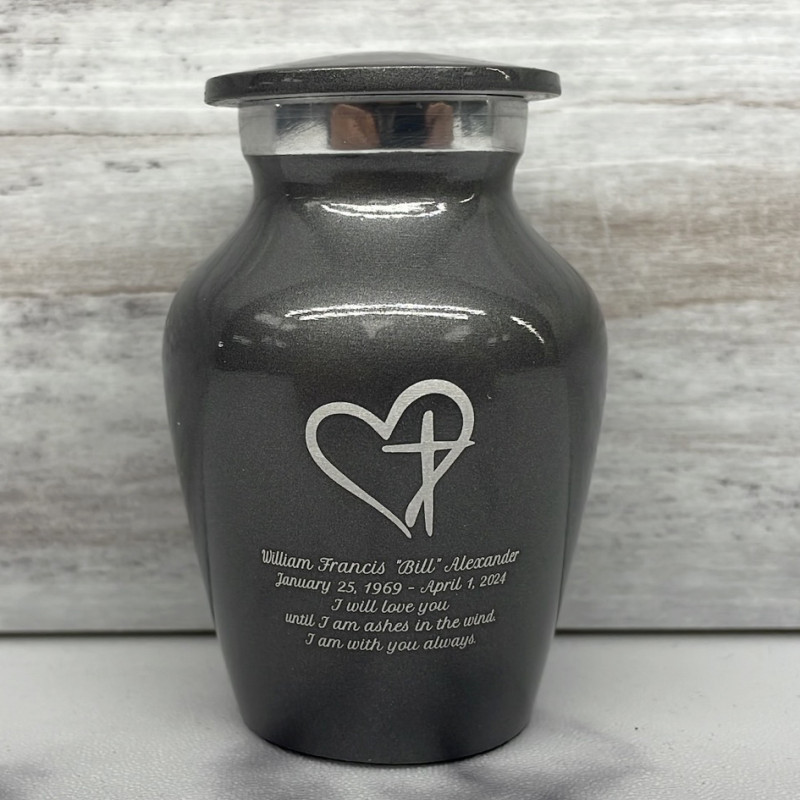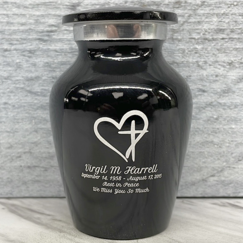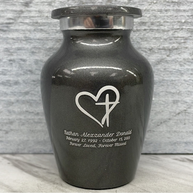 Sharing urns are an option for anyone who is sharing remains amongst family or close friends. They can be used in place of a keepsake urn for a portion of the ashes. Larger than the standard keepsake size, they are able to hold much more ashes and allow for the engraving to be twice the size.