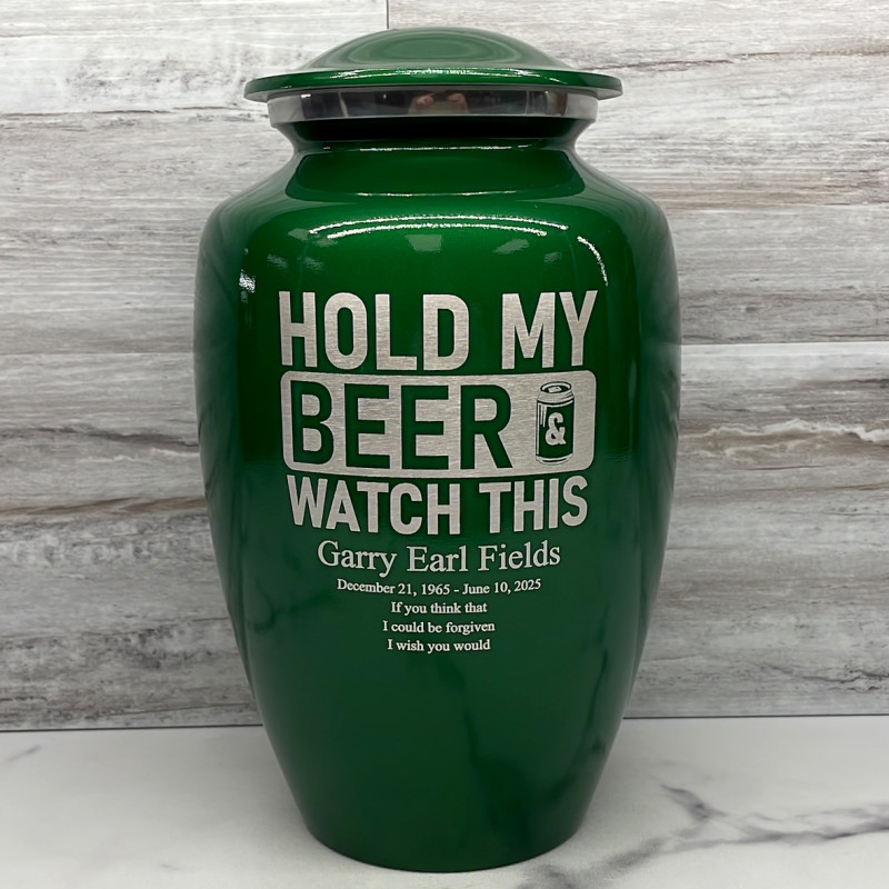 Hold My Beer Watch This Cremation Urn - Shamrock Green
