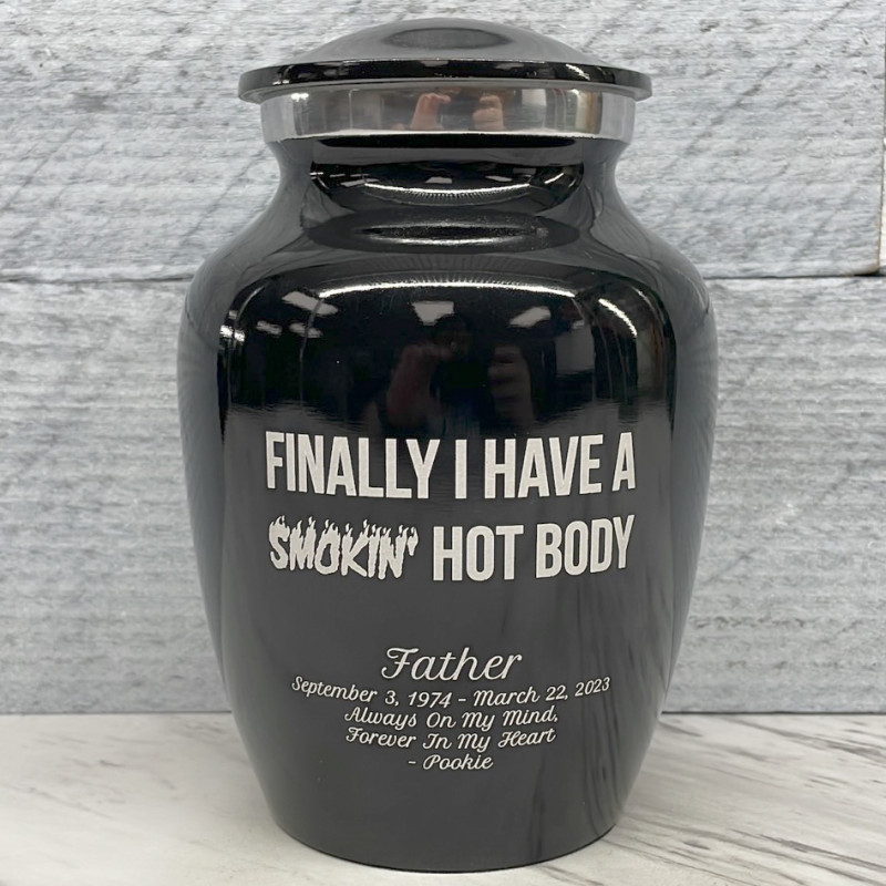 Select a Hot Body Sharing Urn to create a personal memorial that is a step larger than a keepsake urn but more petite than a full size urn. Bold, attractive colors offer sharp contrast with the engraved text and detailed artwork.