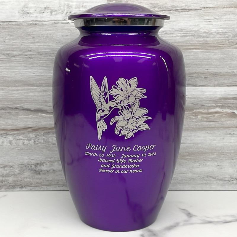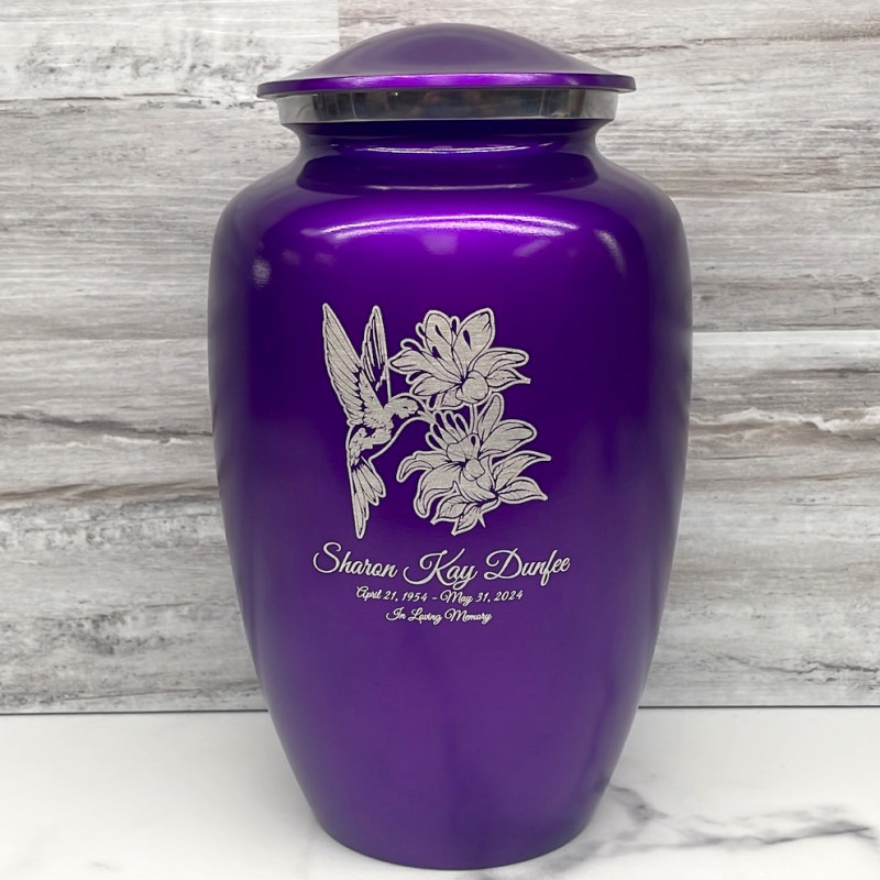 Hummingbird Flowers Cremation Urn - Purple Luster