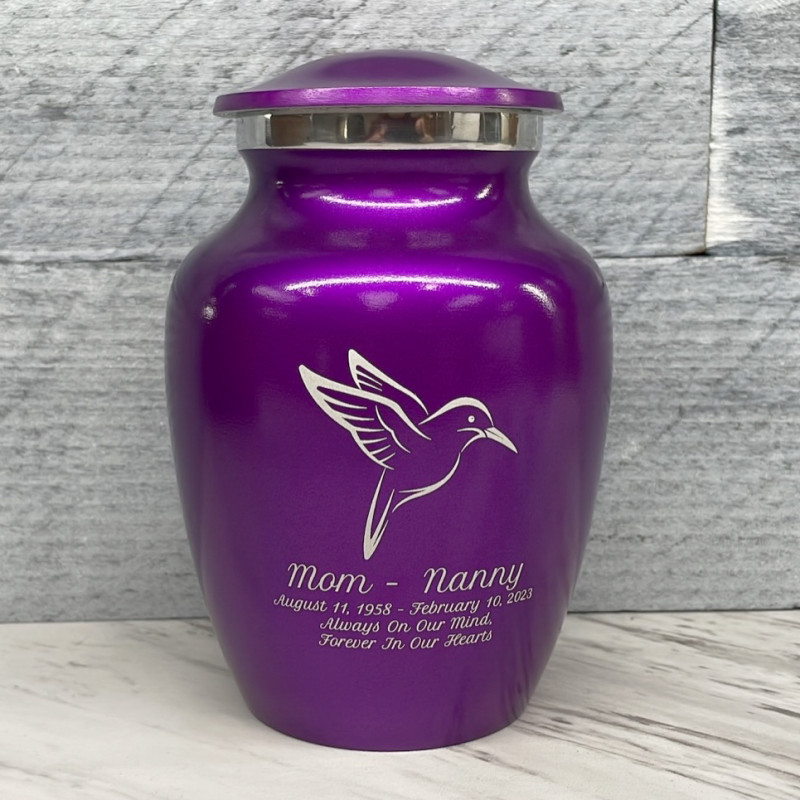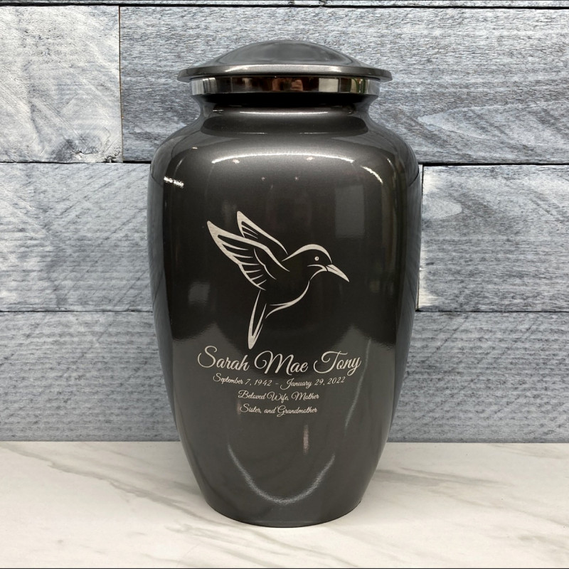 Hummingbird Sharing Urn - Midnight Blue Hummingbird Sharing Urn - Gunmetal Gray Hummingbird Sharing Urn - Purple Luster Hummingbird Sharing Urn - Shamrock Green Hummingbird Sharing Urn - Ruby RedHummingbird Sharing Urn - Jet Black