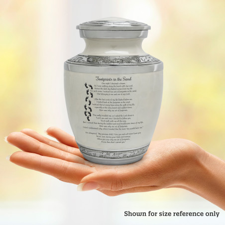 Select I Carried You Sharing Urn - Radiant White to create a personal memorial that is a step larger than a keepsake urn but more petite than a full size urn. Bold, attractive colors offer sharp contrast with the engraved text and detailed artwork.