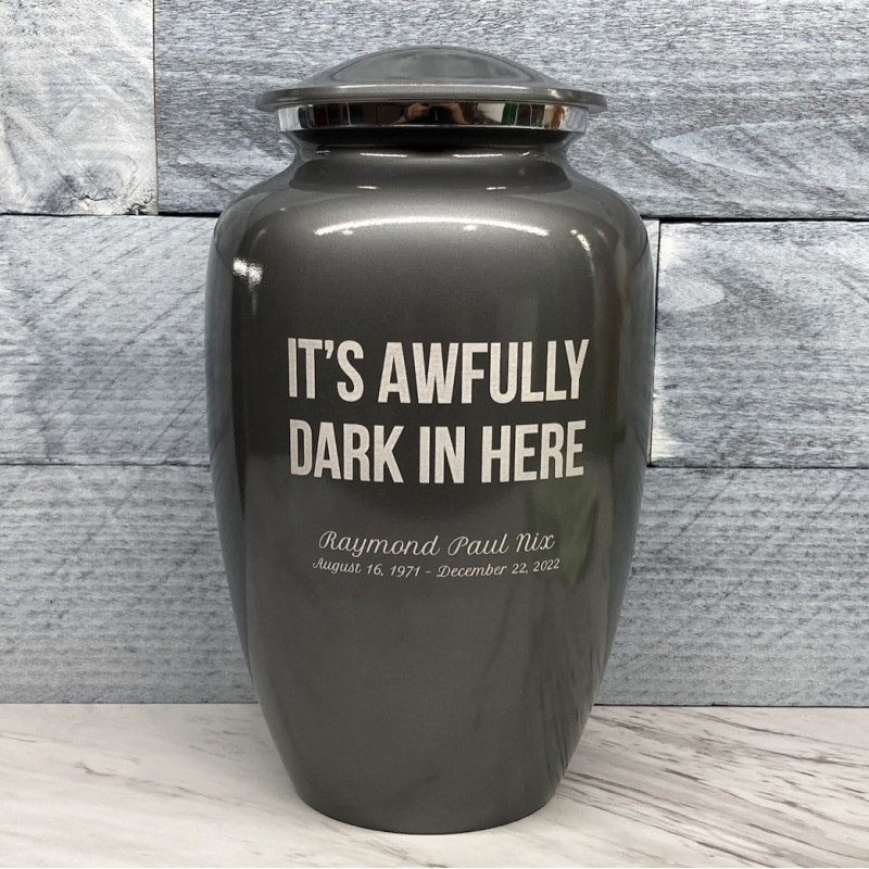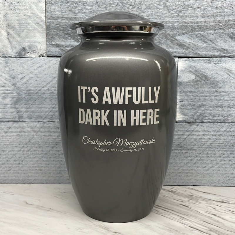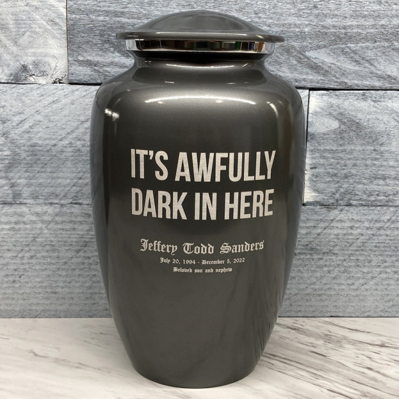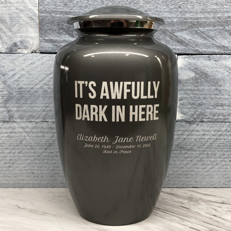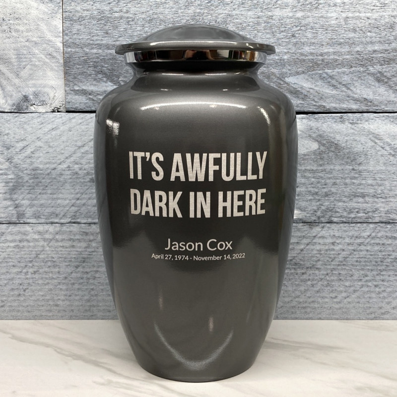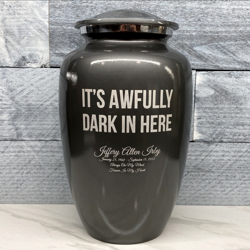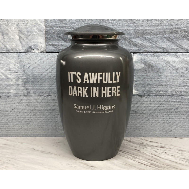 It's Awfully Dark In Here Cremation Urn - Gunmetal Gray