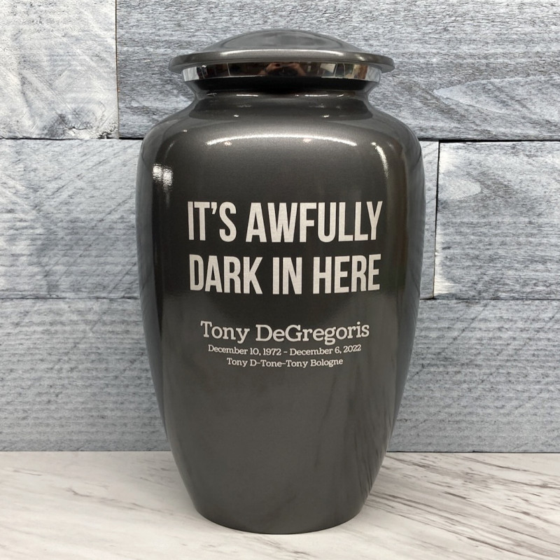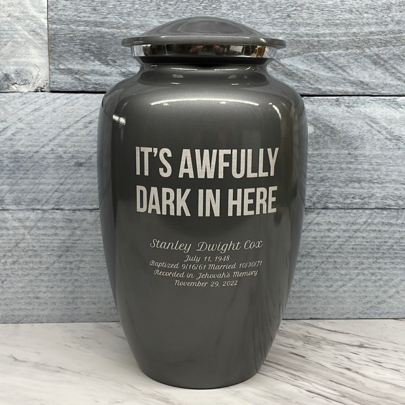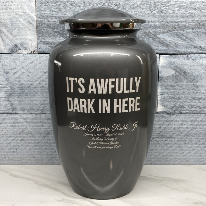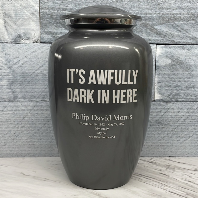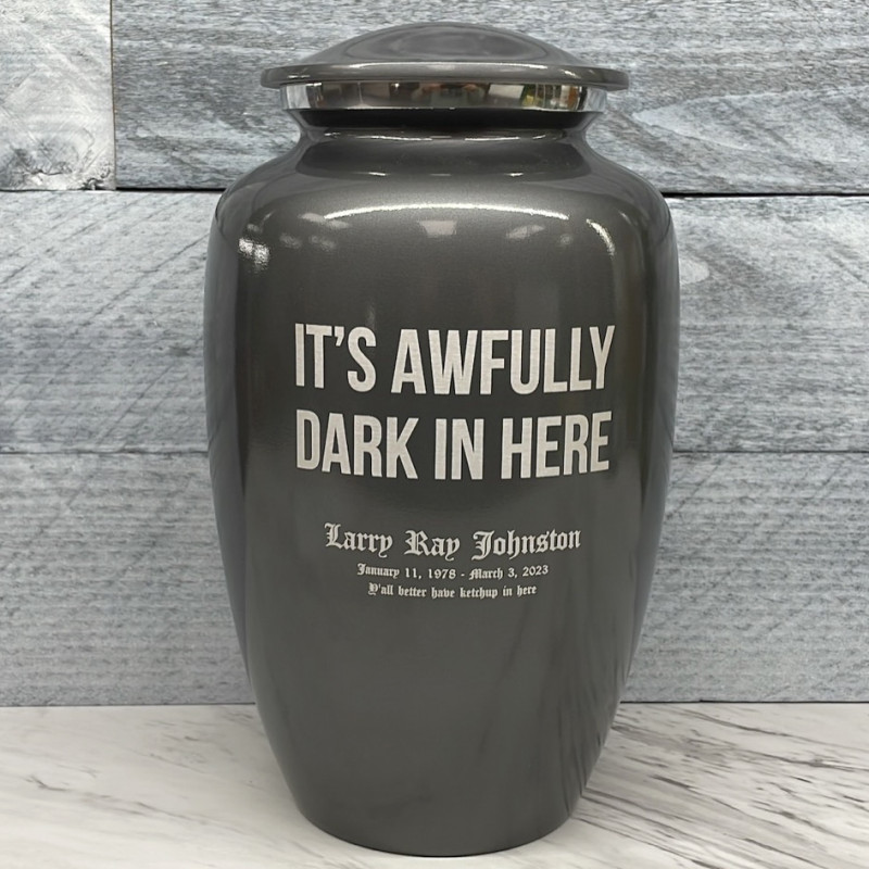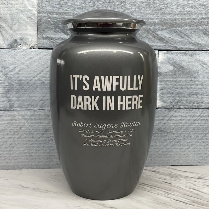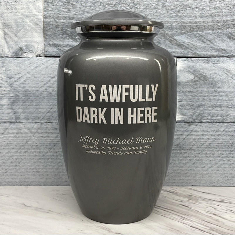 It's Awfully Dark In Here Cremation Urn - Gunmetal Gray