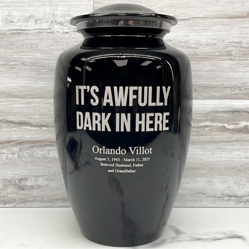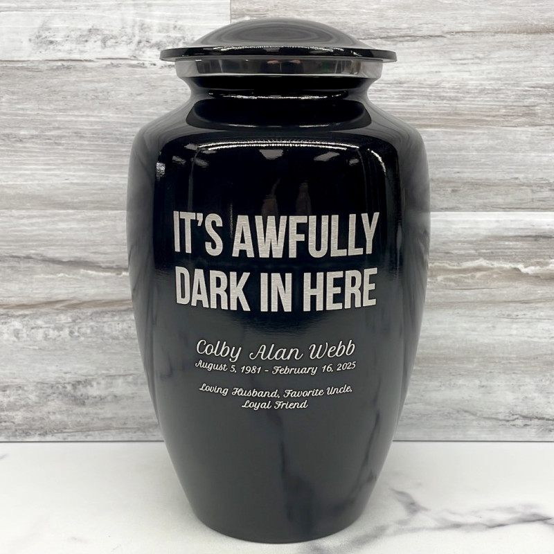 It's Awfully Dark In Here Cremation Urn - Jet Black