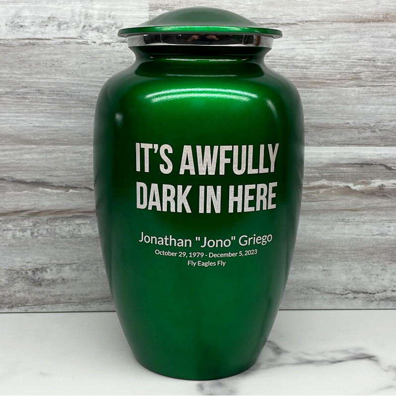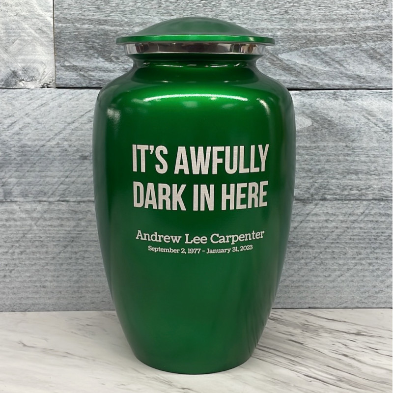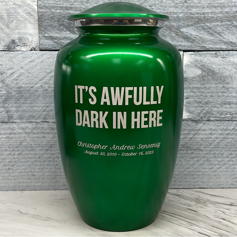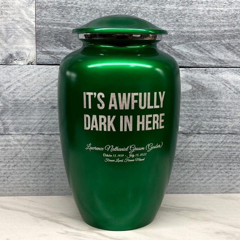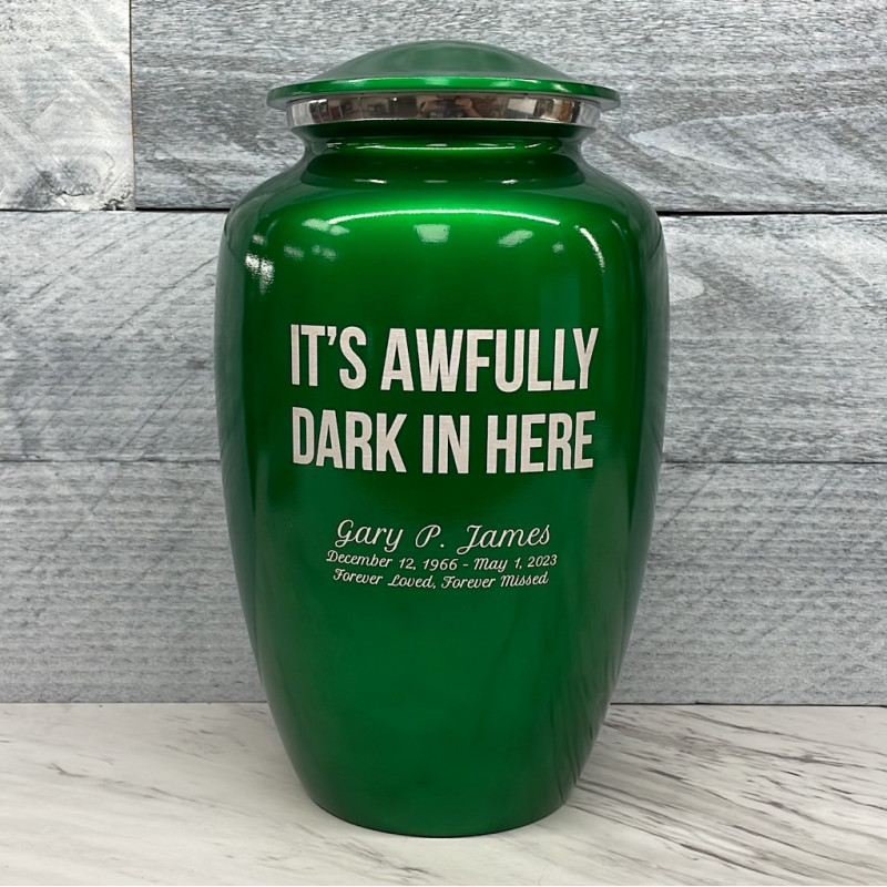 It's Awfully Dark In Here Cremation Urn - Shamrock Green