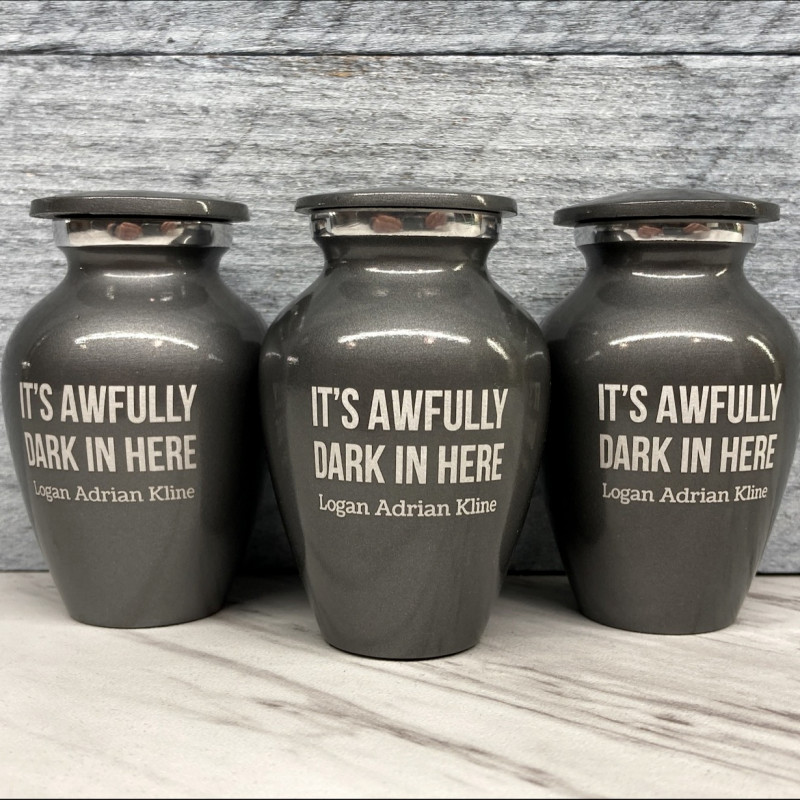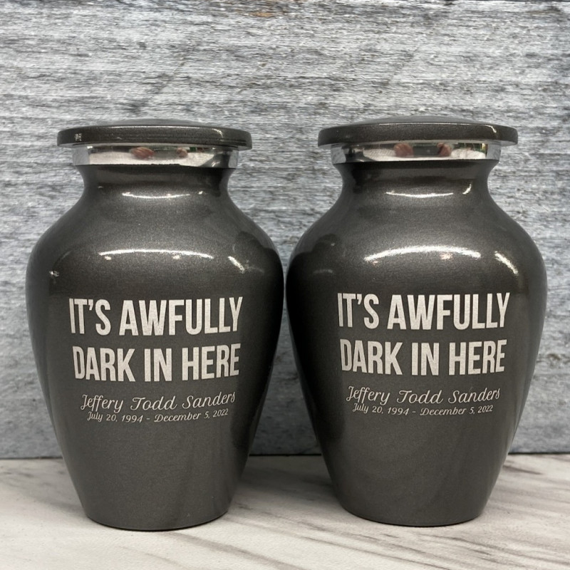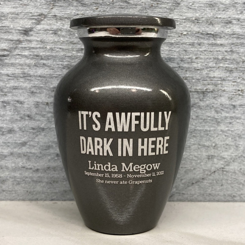 It's Awfully Dark In Here Keepsake Urn - Gunmetal Gray
