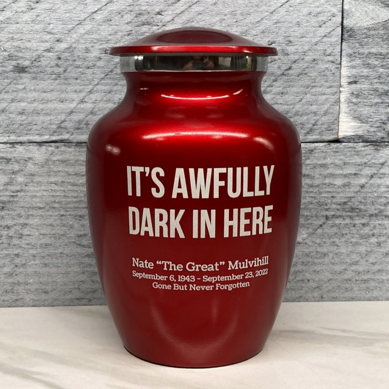 It's Awfully Dark In Here Sharing Urn - Midnight Blue It's Awfully Dark In Here Sharing Urn - Gunmetal Gray It's Awfully Dark In Here Sharing Urn - Purple Luster It's Awfully Dark In Here Sharing Urn - Shamrock GreenIt's Awfully Dark In Here Sharing Urn - Ruby Red
