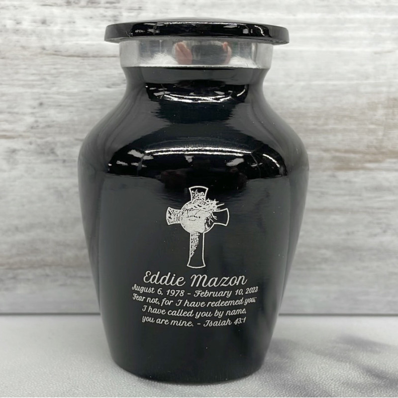 Jesus Crucifix Keepsake Urn - Jet Black
