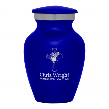 Jesus Crucifix Keepsake Urn - Midnight Blue