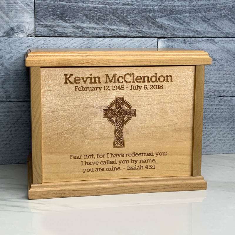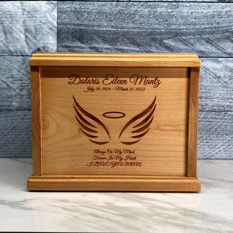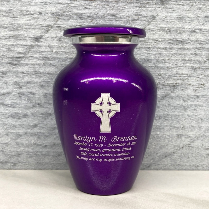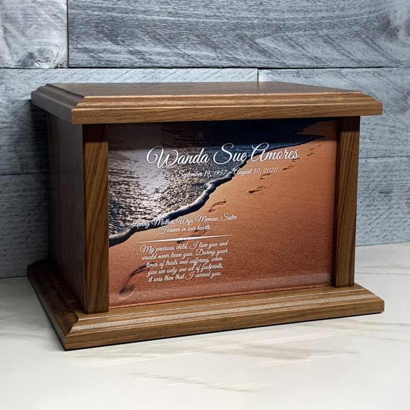 Choose an engraved keepsake urn to create an intimate and personal memorial for family members or close friends. Bold, attractive colors offer sharp contrast with the engraved text and artwork.