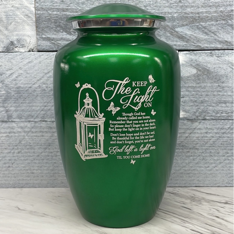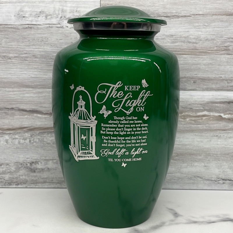 Keep the Light On Cremation Urn - Midnight Blue Keep the Light On Cremation Urn - Gunmetal Gray Keep the Light On Cremation Urn - Purple LusterSizes