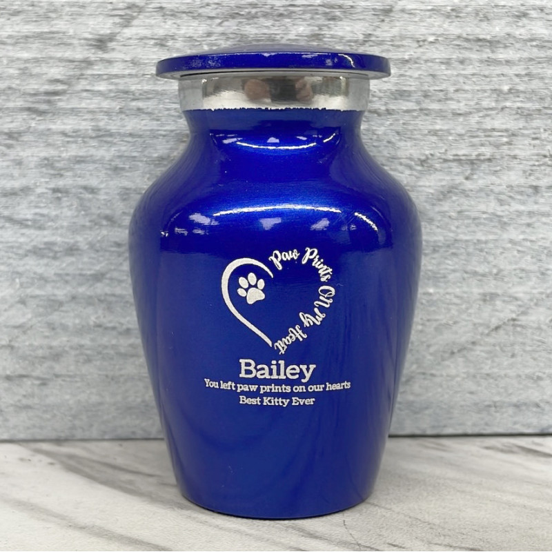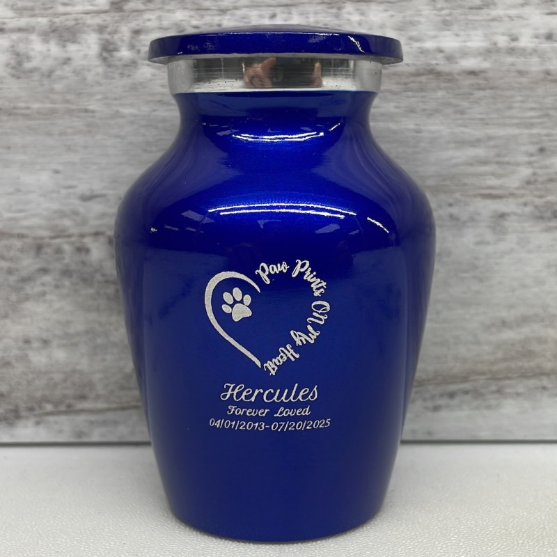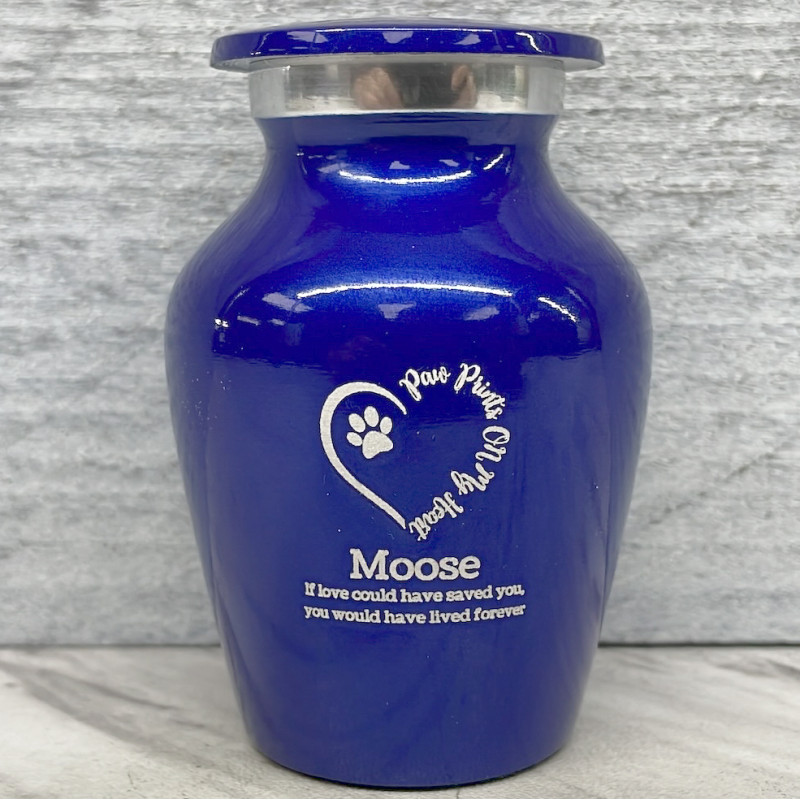 Keepsake Paw Prints On My Heart Pet Cremation Urn - Midnight Blue