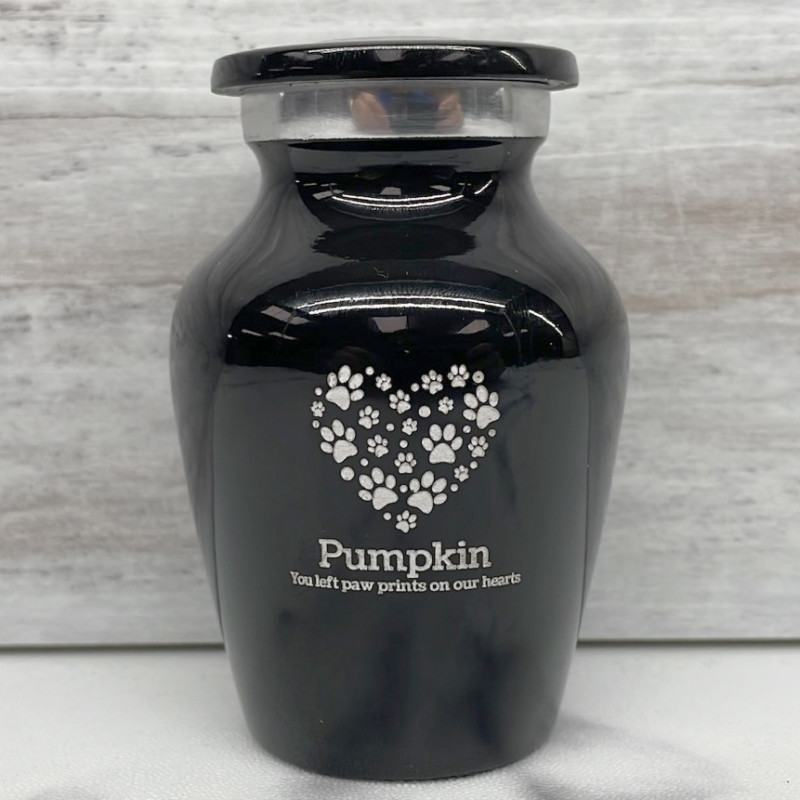 Keepsake Pawprint Heart Pet Cremation Urn - Jet Black