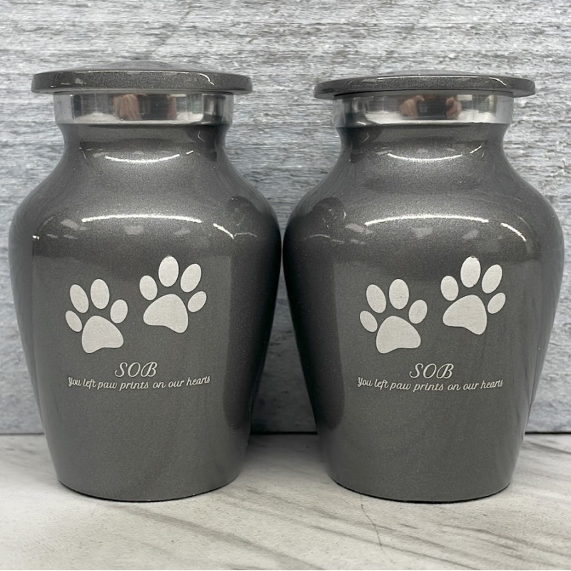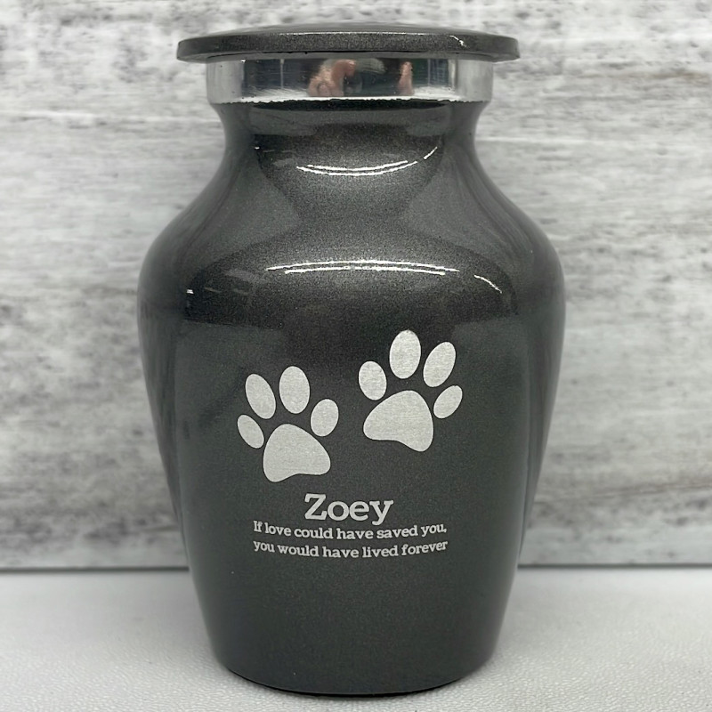 Keepsake Pawprints Heart Pet Cremation Urn - Gunmetal Gray