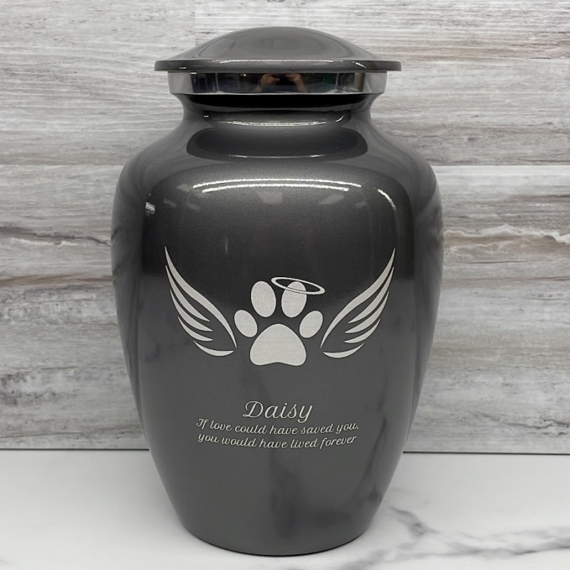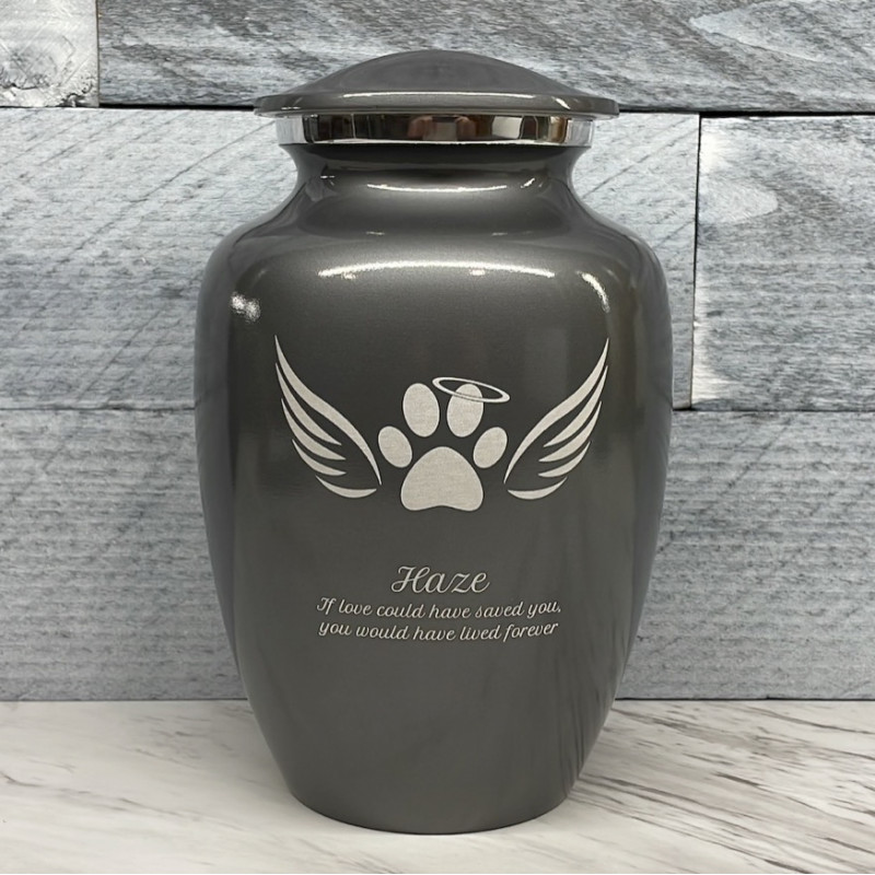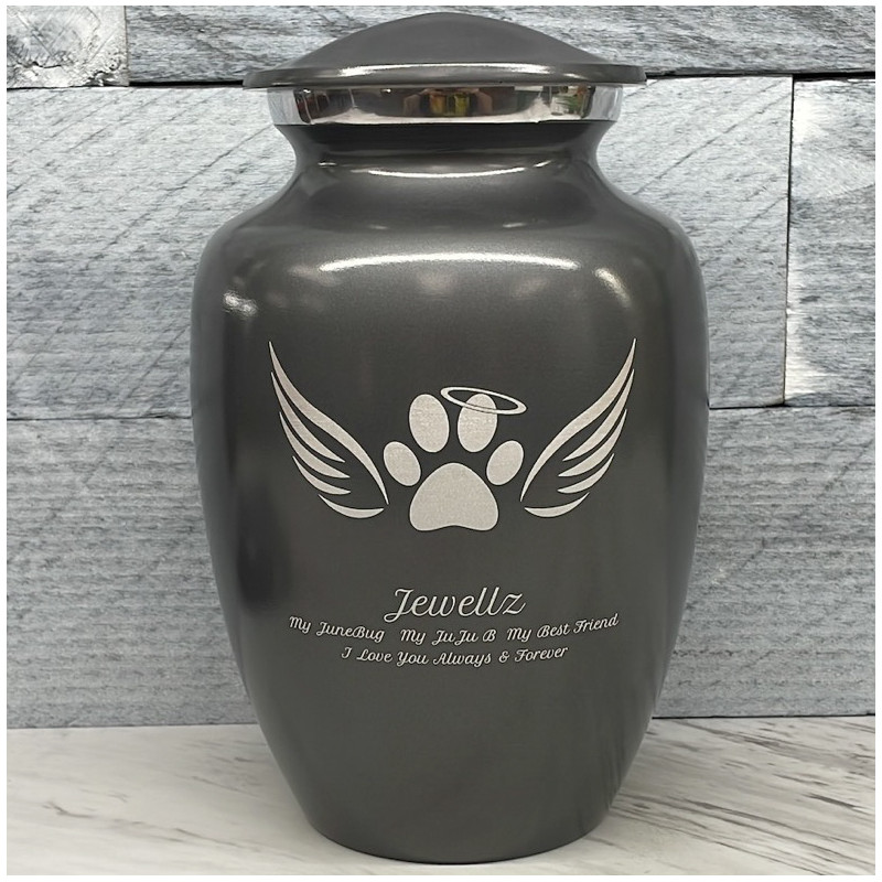 Large Angel Wings Pet Cremation Urn - Gunmetal Gray