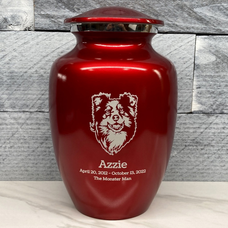 Large Australian Shepherd Pet Cremation Urn - Ruby Red