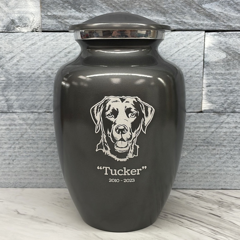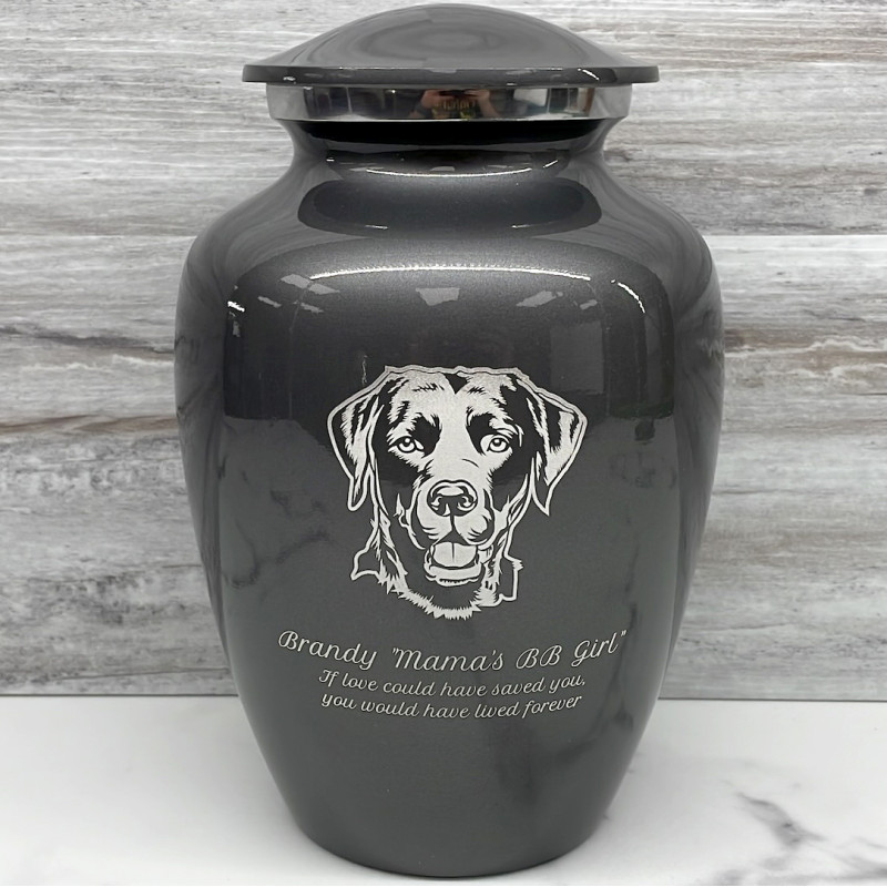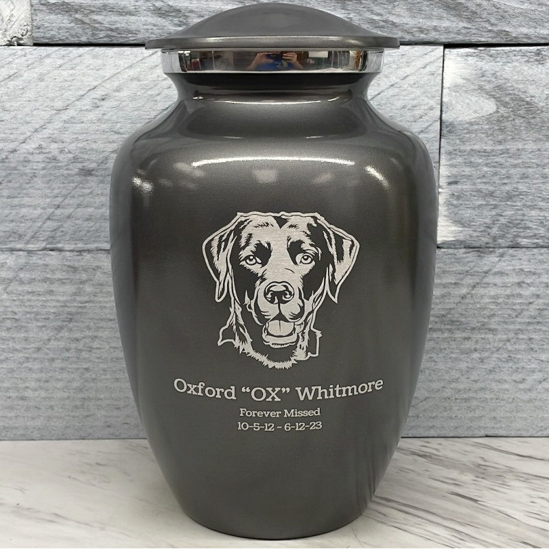 Large Black Lab Dog Cremation Urn - Gunmetal Gray