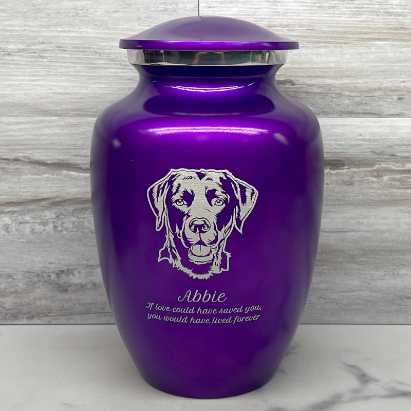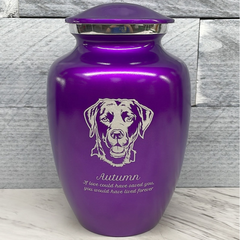 Large Black Lab Dog Cremation Urn - Purple Luster