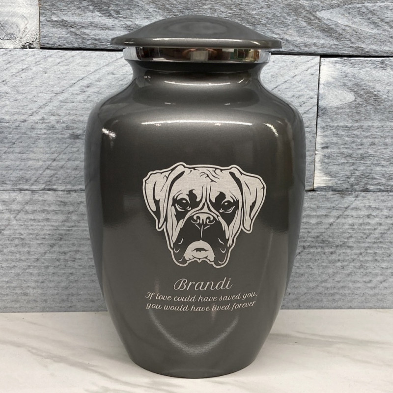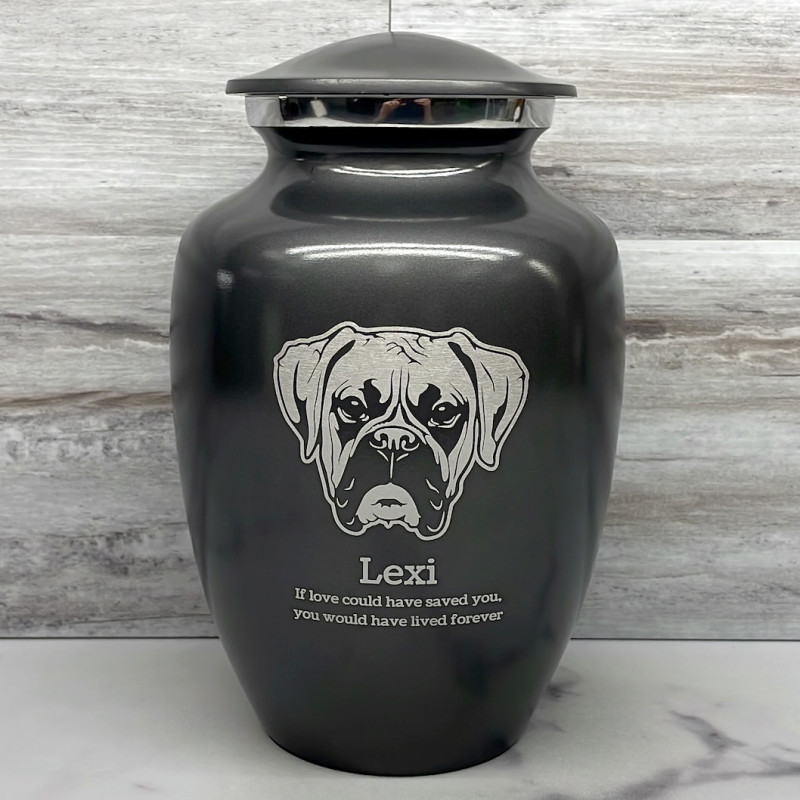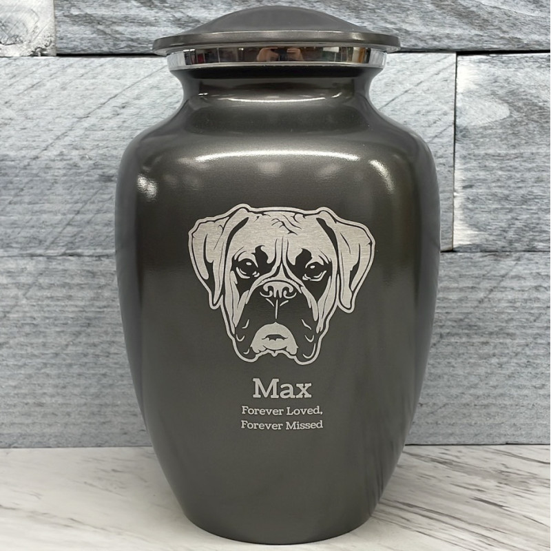 Large Boxer Dog Cremation Urn - Gunmetal Gray
