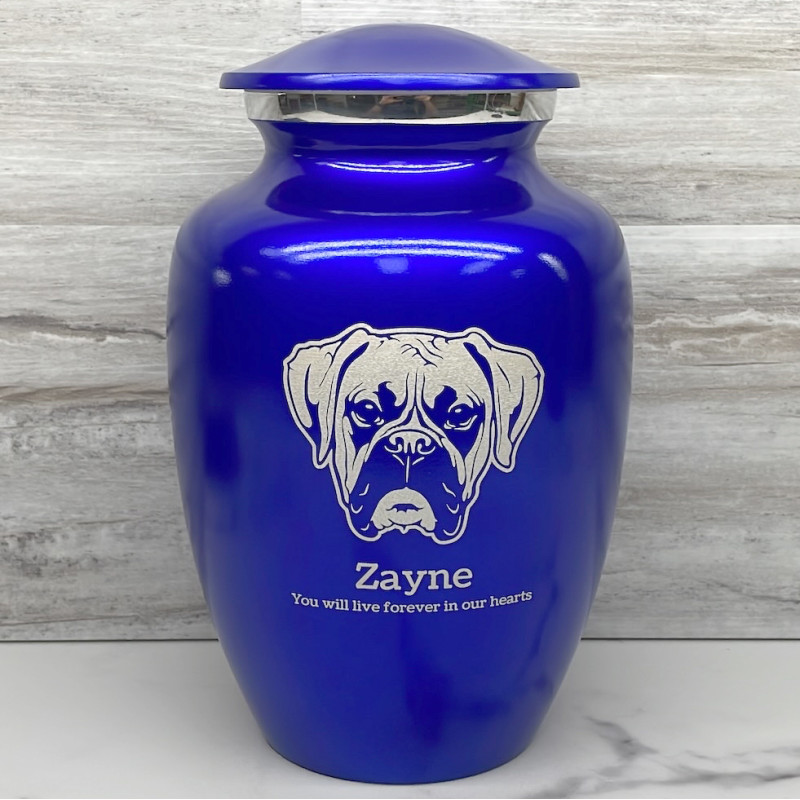 Large Boxer Dog Cremation Urn - Midnight Blue