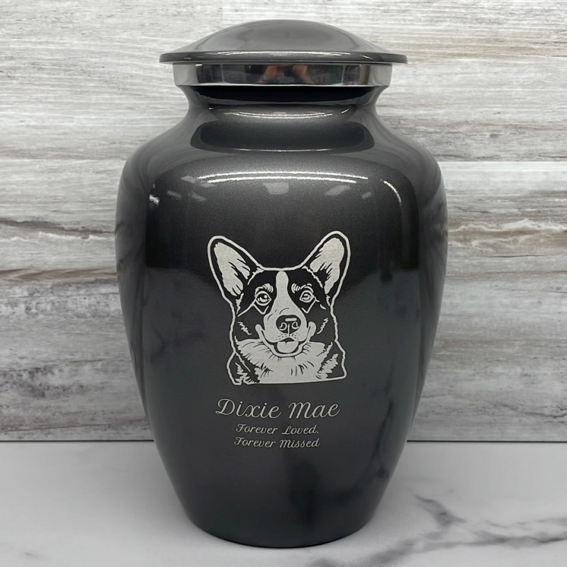 Large Corgi Dog Cremation Urn - Gunmetal Gray