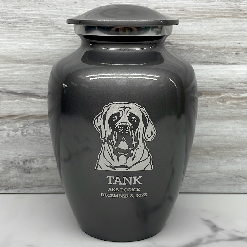 Large English Mastiff Dog Cremation Urn - Gunmetal Gray