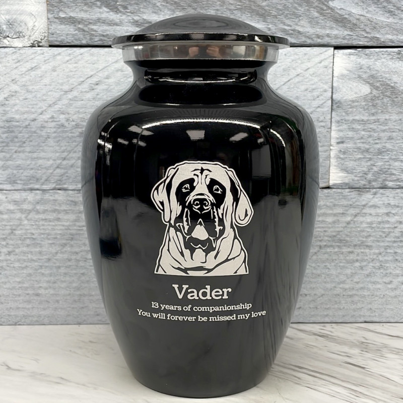 Large English Mastiff Pet Cremation Urn - Jet Black
