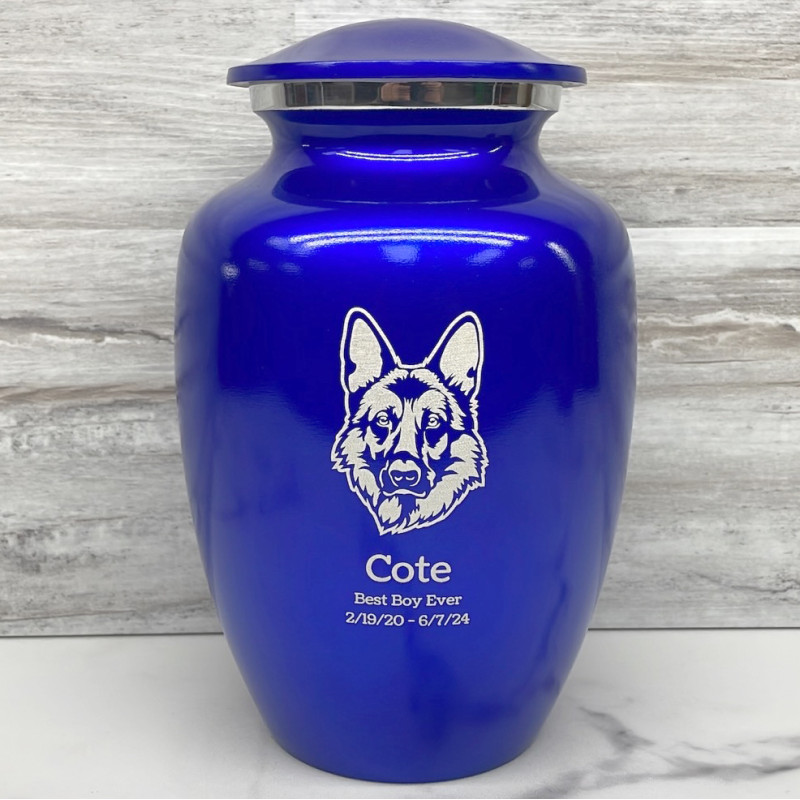 Large German Shepherd Dog Cremation Urn - Midnight Blue