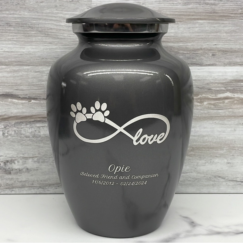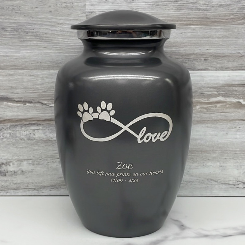 Large Infinite Love Pet Cremation Urn - Gunmetal Gray