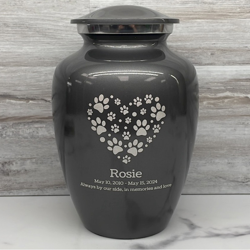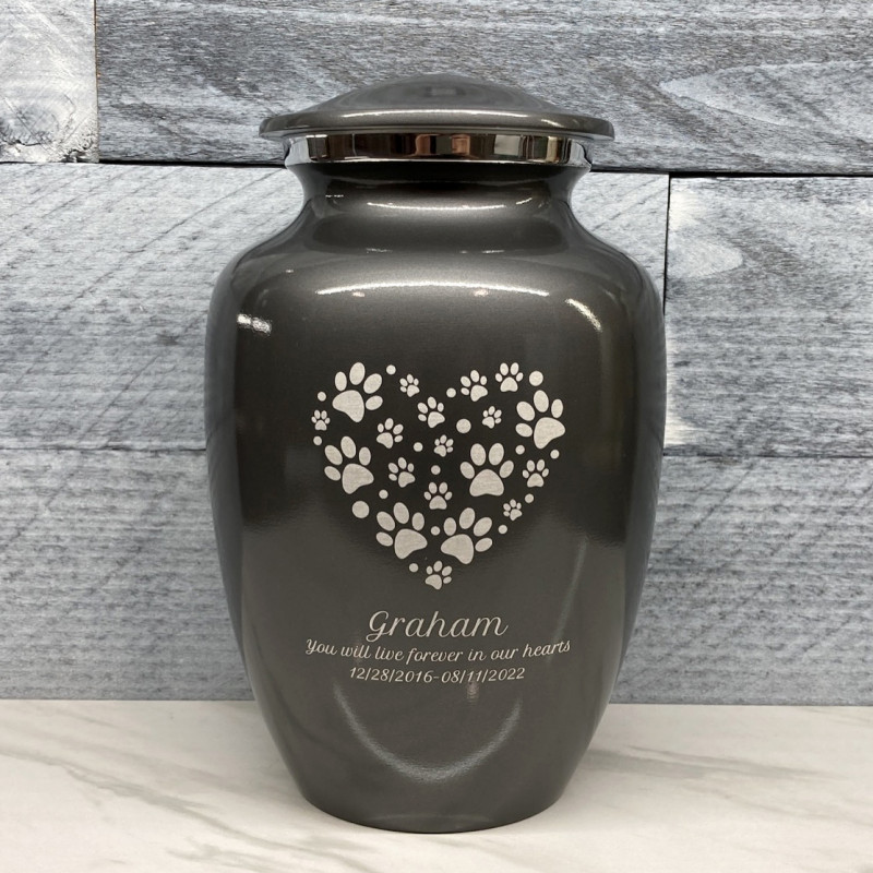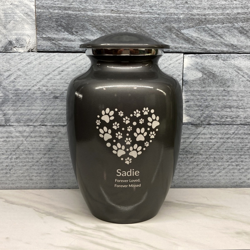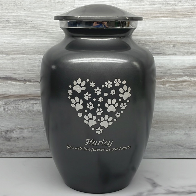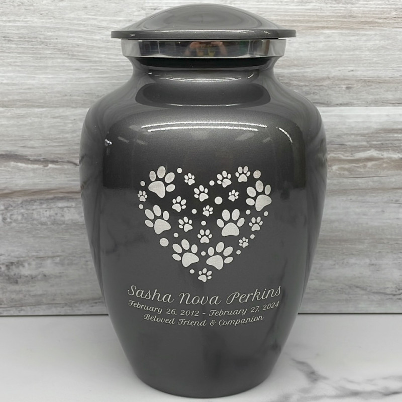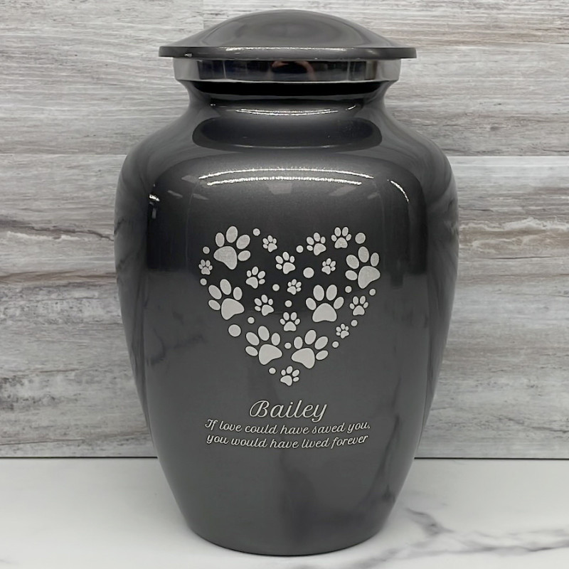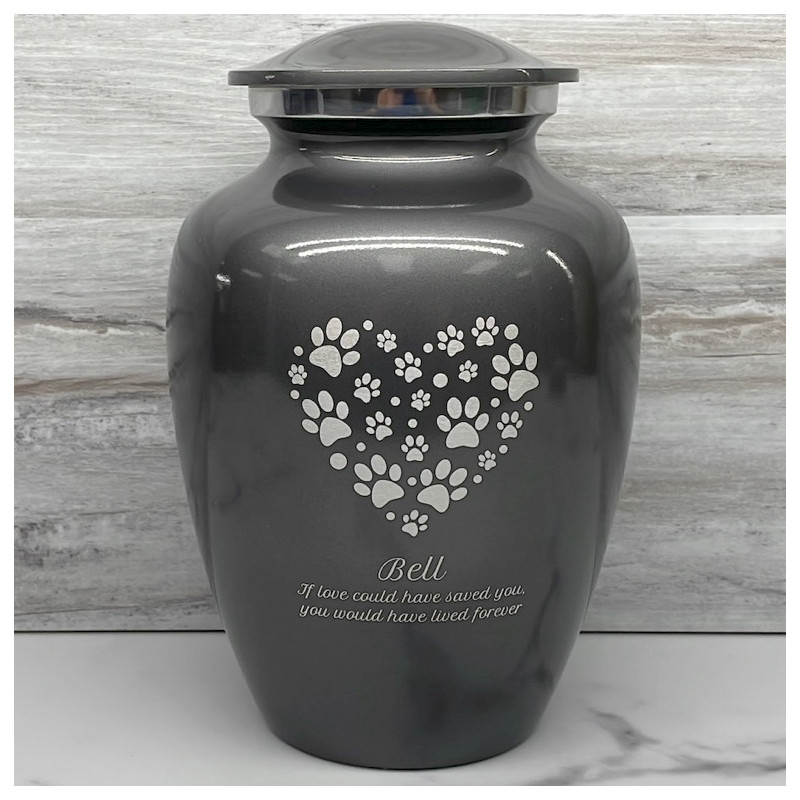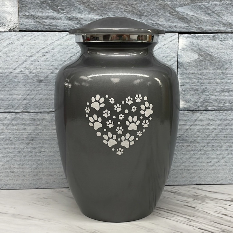 Large Pawprint Heart Pet Cremation Urn - Gunmetal Gray