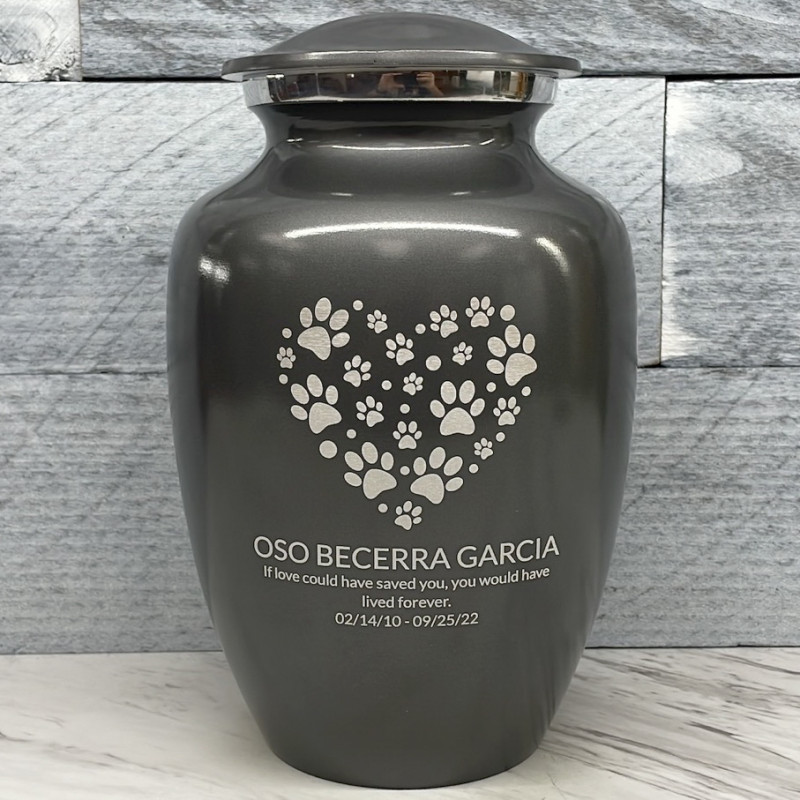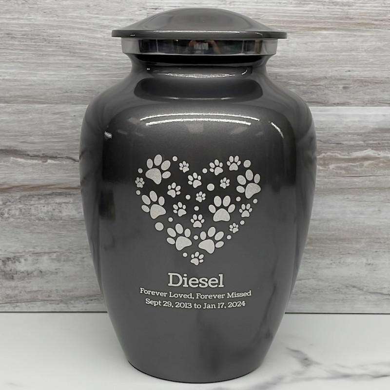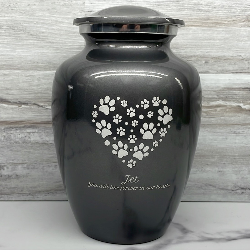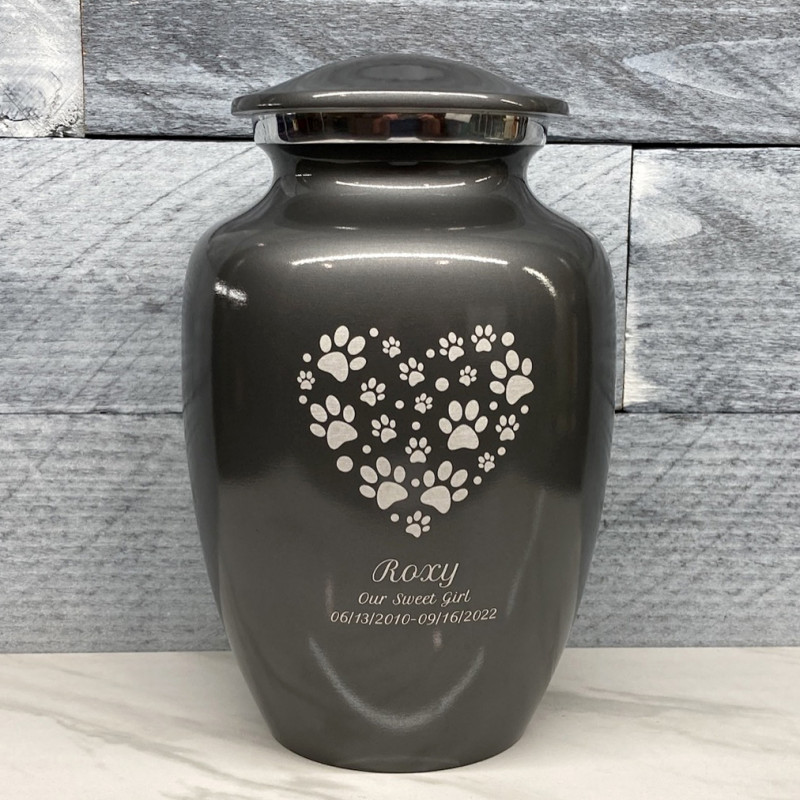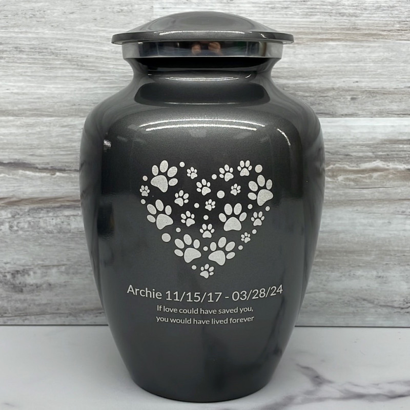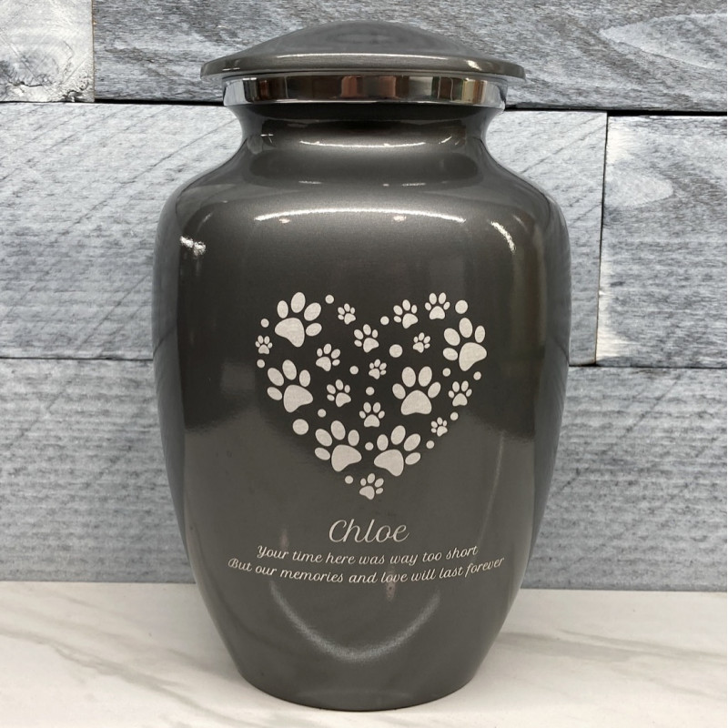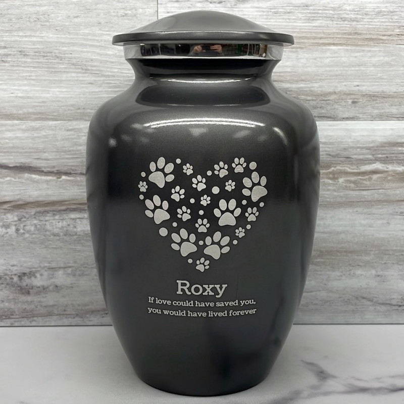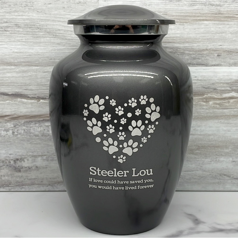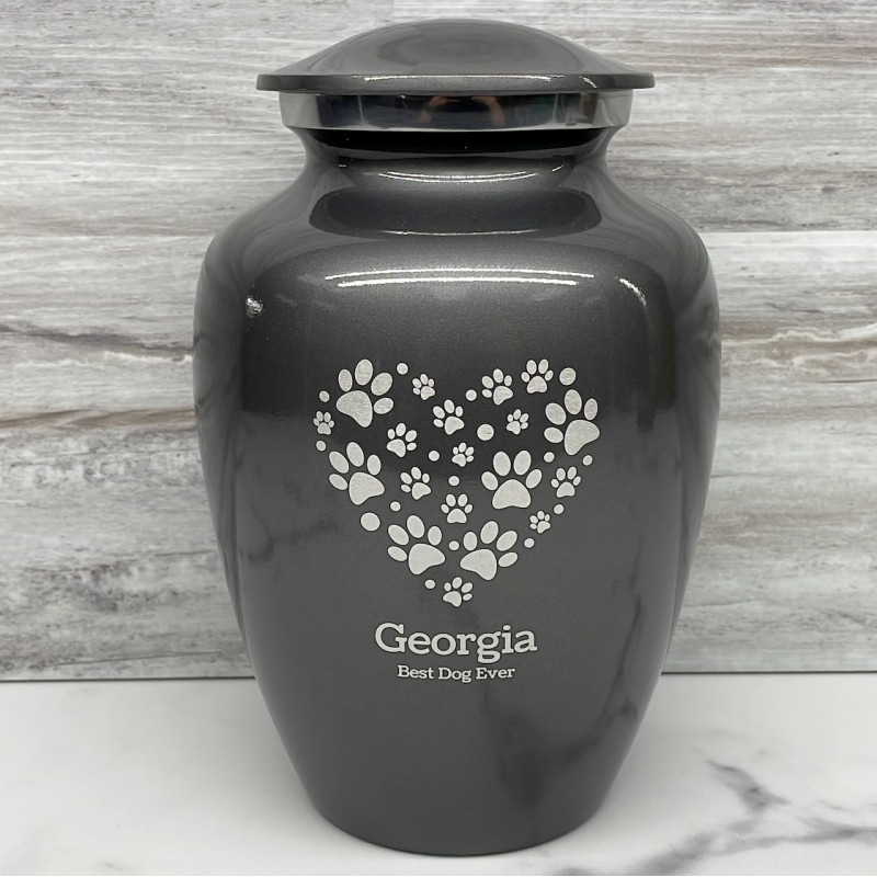 Large Pawprint Heart Pet Cremation Urn - Gunmetal Gray