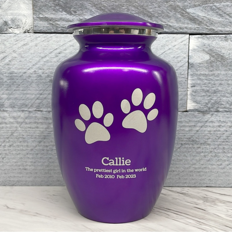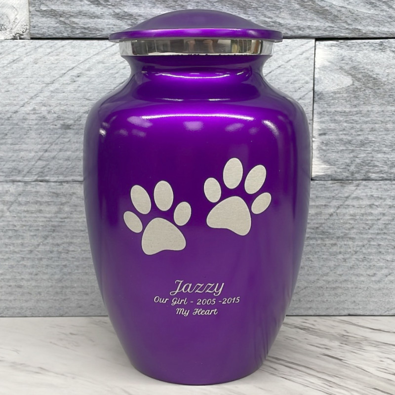 Large Pawprints Pet Cremation Urn - Purple Luster