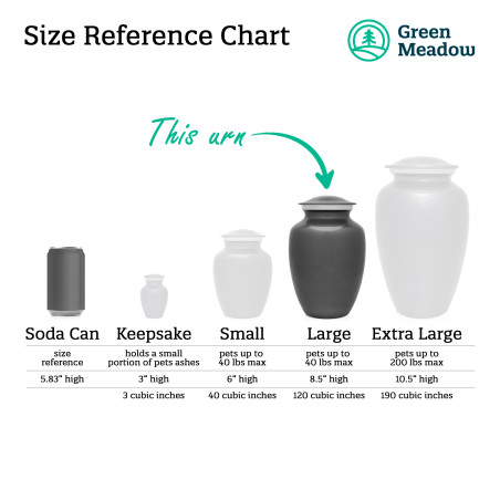 This Large size urn is suitable for all dogs that were less than 120 pounds before their passing. The lid has quality threads that make it simple to remove but also secure when it is closed. There is felt covering the bottom of the urn so it is safe to place on any surface. A matching size black velour back is optionally available that helps protect the finish of the urn.