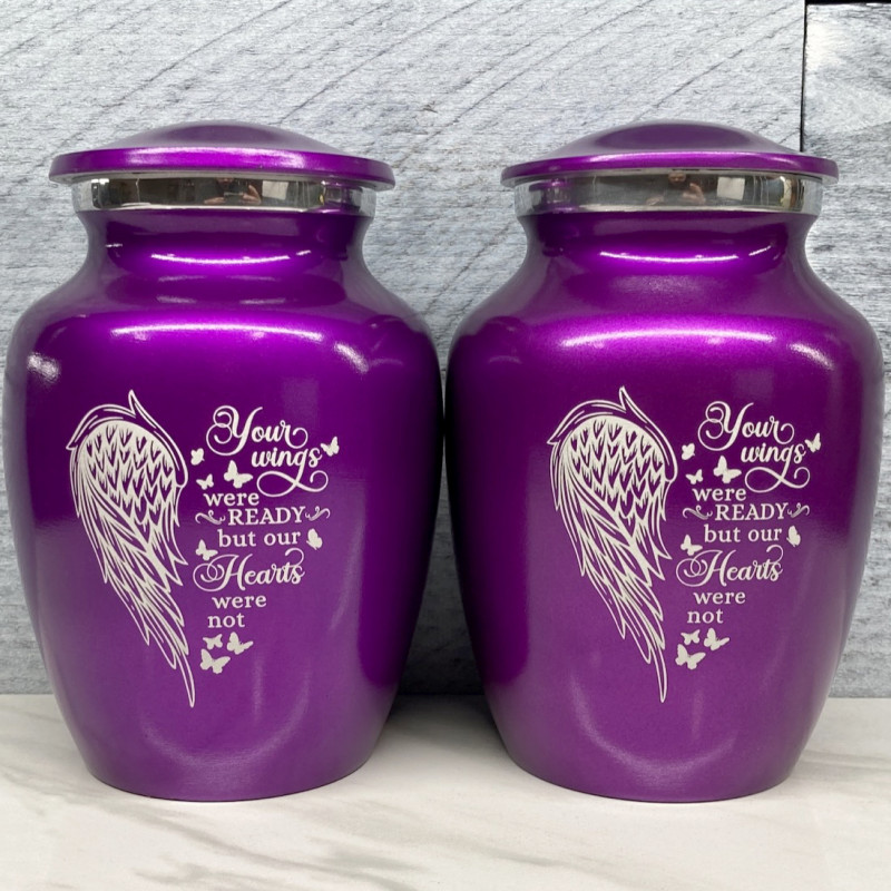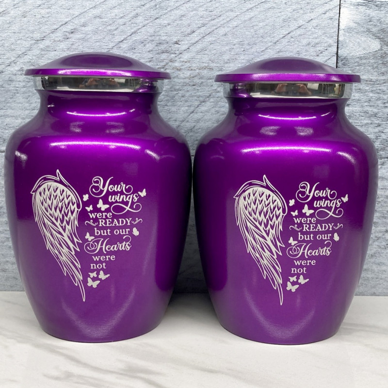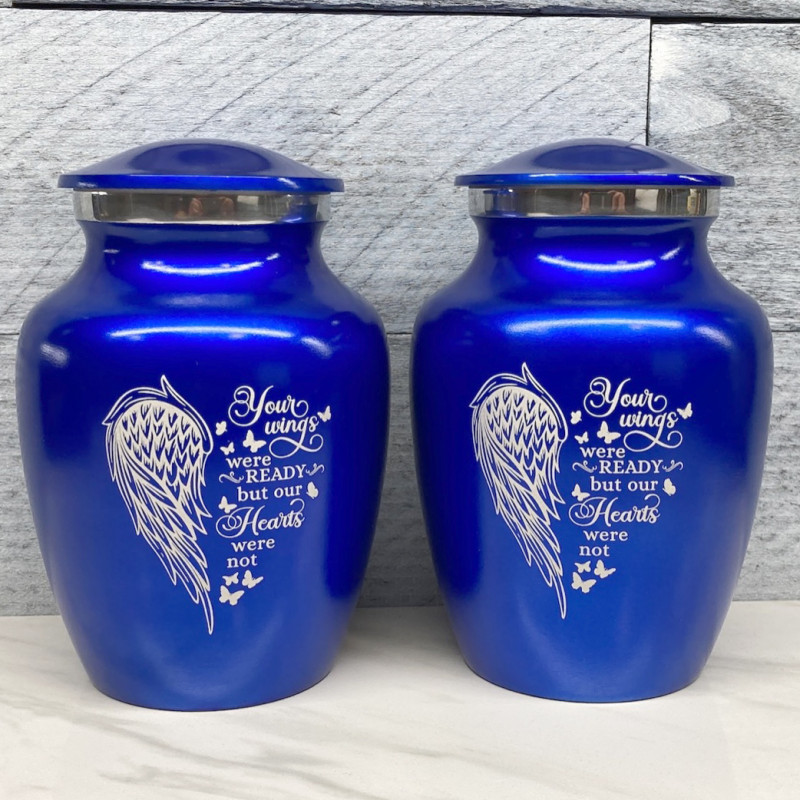 Sharing urns are an option for anyone who is sharing remains amongst family or close friends. They can be used in place of a keepsake urn for a portion of the ashes. Larger than the standard keepsake size, they are able to hold much more ashes and allow for the engraving to be twice the size.