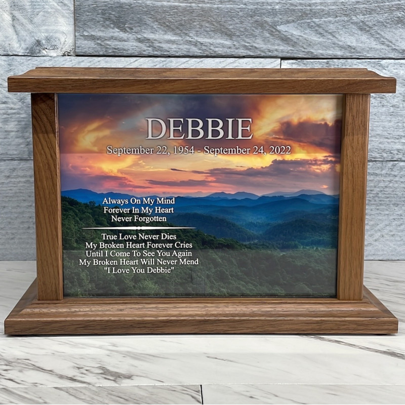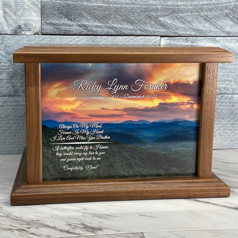 Transferring ashes into the urn is simply achieved by removing the threaded lid and placing contents inside through the large opening in the top. Felt covers the bottom keeps your display surfaces safe from scratches.