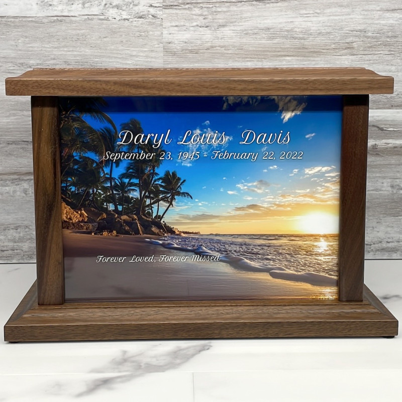 A complete package of quality, value and beauty, the Shamrock Green Loving Hearts Cremation Urn is a memorial worthy of your loved one.