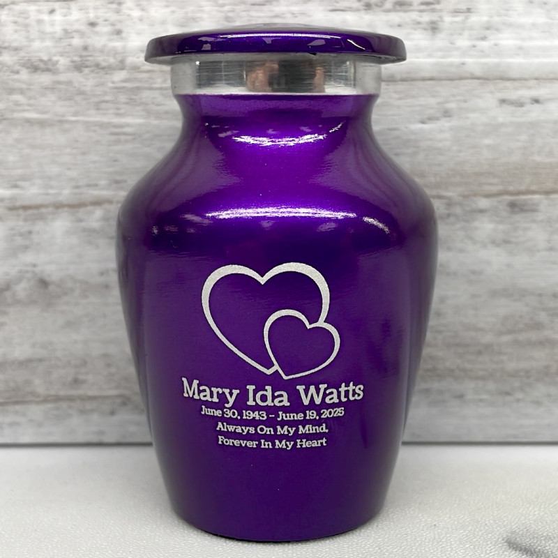 Loving Hearts Keepsake Urn - Midnight Blue Loving Hearts Keepsake Urn - Gunmetal GrayLoving Hearts Keepsake Urn - Purple Luster