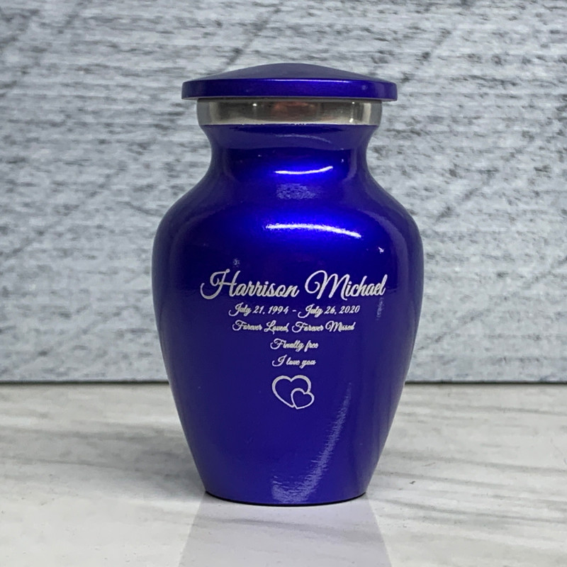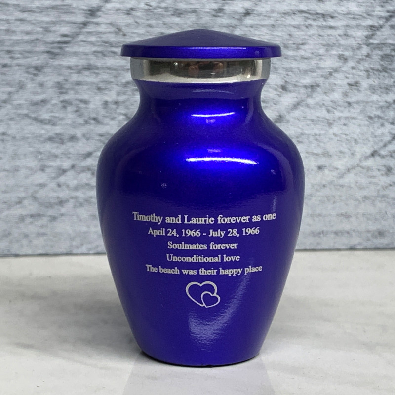 Loving Hearts Keepsake Urn - Midnight Blue Loving Hearts Keepsake Urn - Gunmetal Gray Loving Hearts Keepsake Urn - Purple LusterSizes