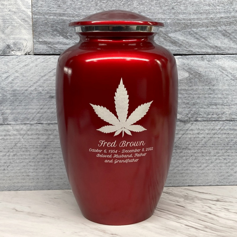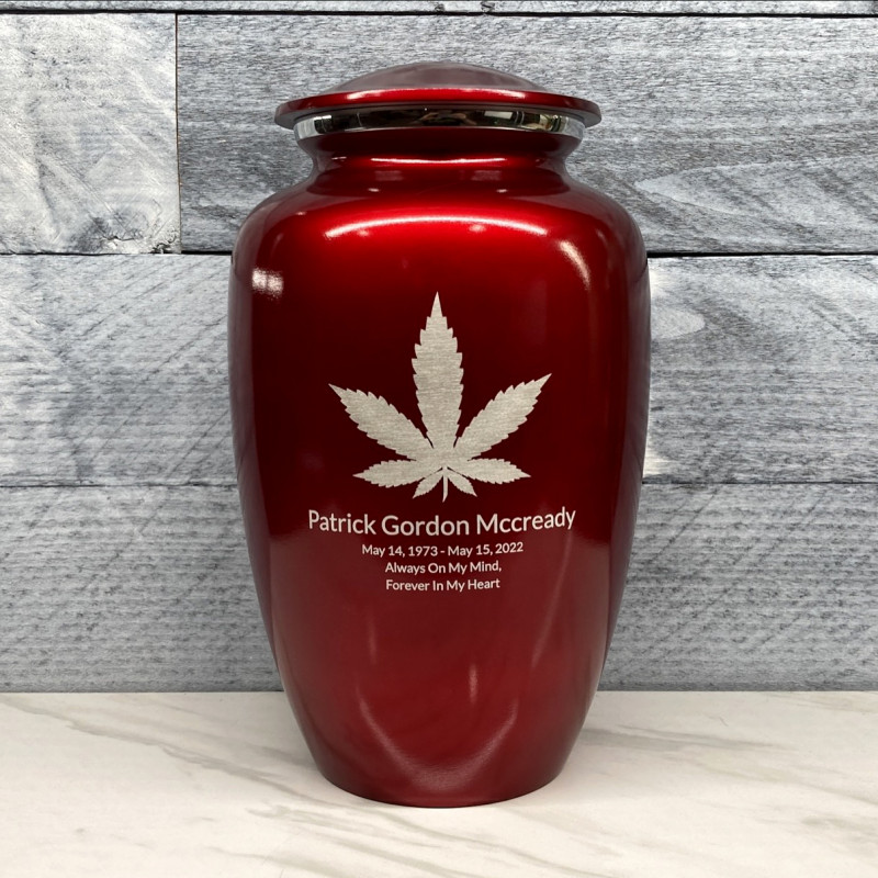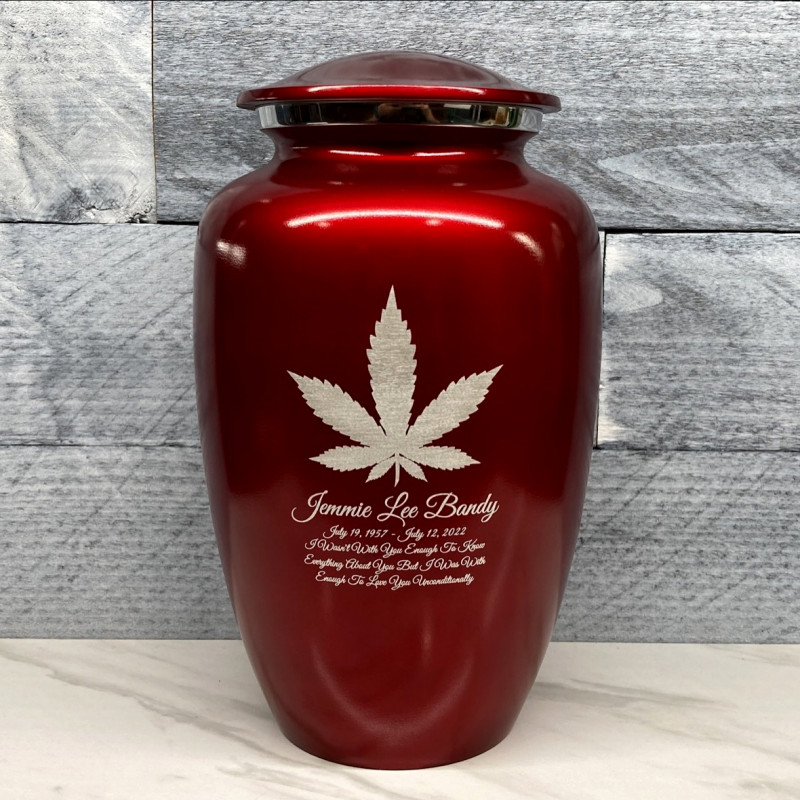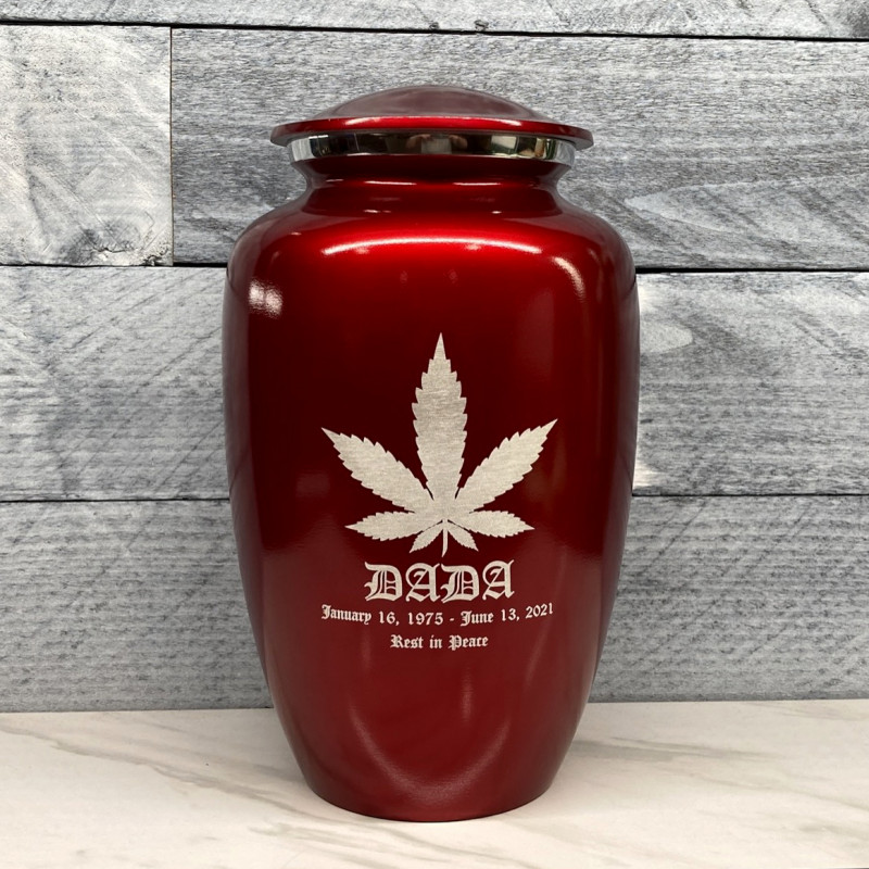 The Ruby Red Marijuana Cremation Urn is a high quality memorial that is an amazing value while also offering a wide range of engraving options.