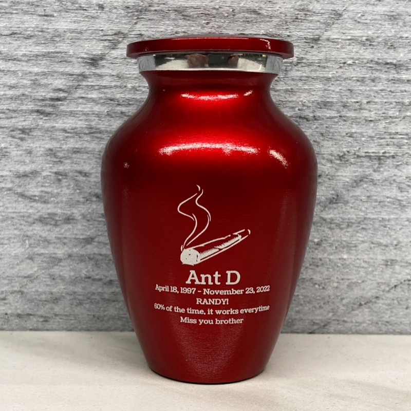 Choose an engraved keepsake urn to create an intimate and personal memorial for family members or close friends. Bold, attractive colors offer sharp contrast with the engraved text and artwork.