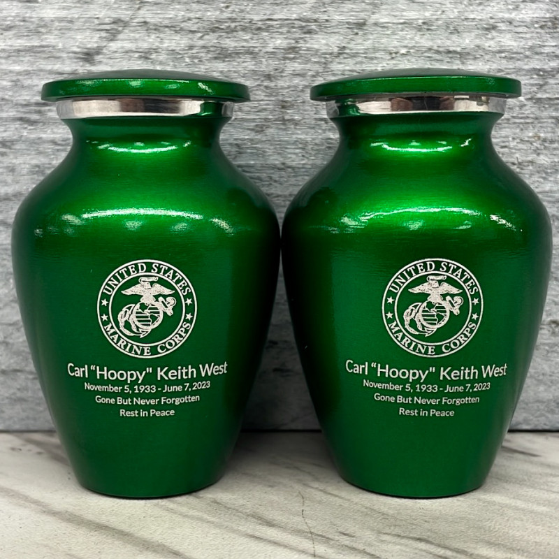 Marine Corps Keepsake Urn - Midnight Blue Marine Corps Keepsake Urn - Gunmetal Gray Marine Corps Keepsake Urn - Purple LusterSizes
