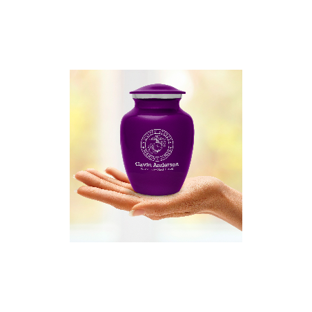 Remember the dutiful and patriotic spirit of your loved veteran with the Purple Luster Marine Corps Sharing Cremation urn. It's an outstanding value that allows everyone in the family to have a memorial of their own engraved with an Marine Corps Emblem. With optional engraving front and back it can be made unique to your loved one. A threaded lid and felt base ensure it securely closes and protects display surfaces.