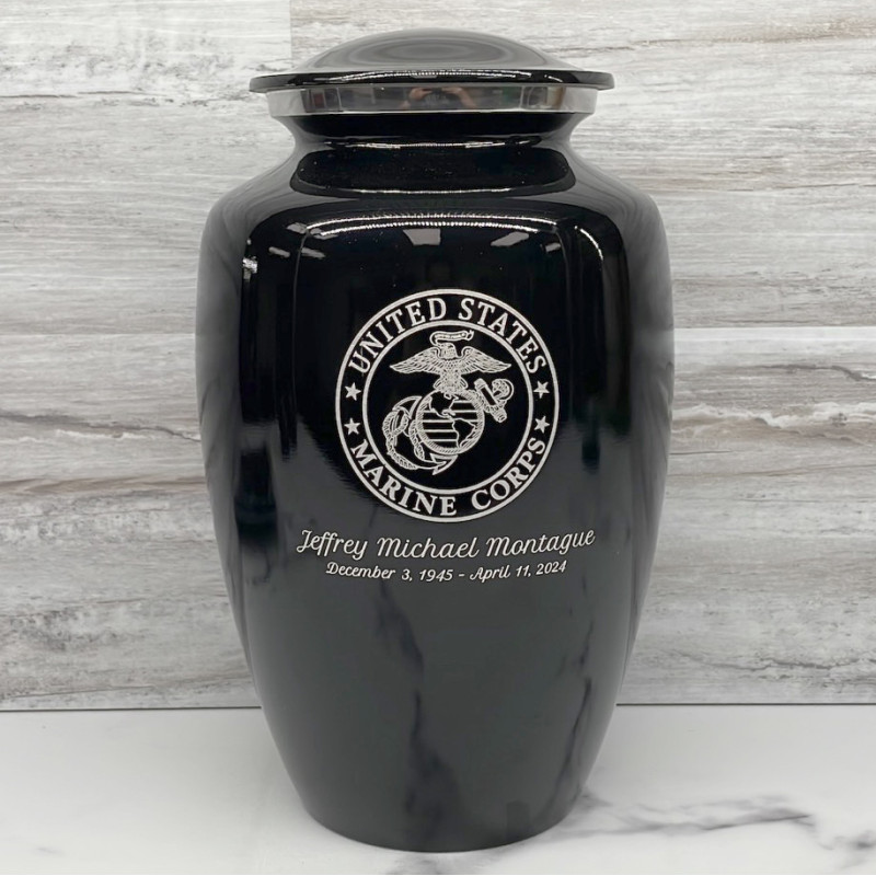 Marines Cremation Urn - Jet Black