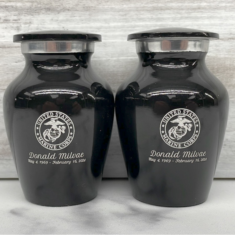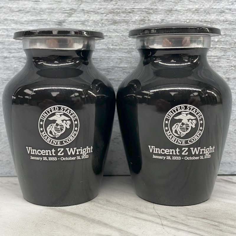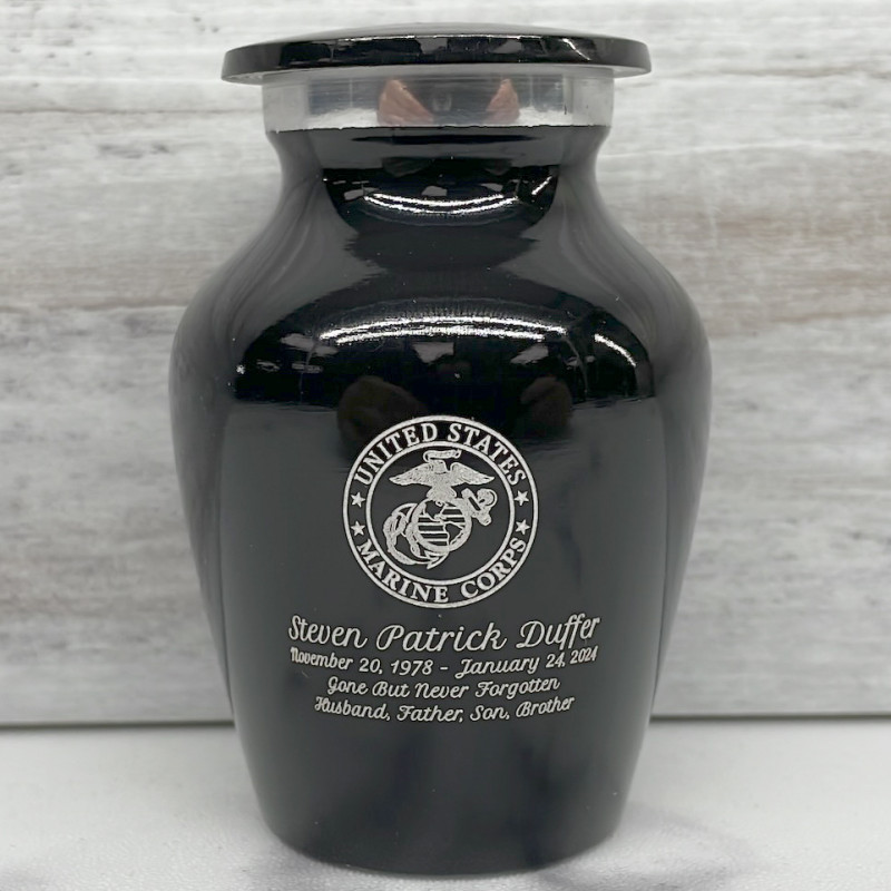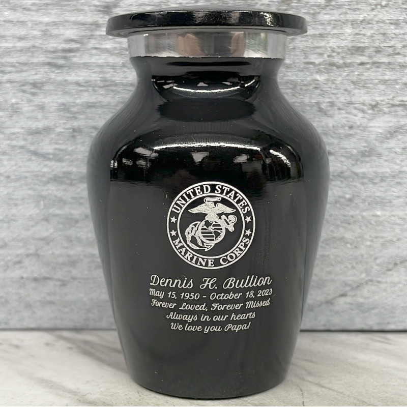 Marine Corps Keepsake Urn - Midnight Blue Marine Corps Keepsake Urn - Gunmetal Gray Marine Corps Keepsake Urn - Purple Luster Marine Corps Keepsake Urn - Shamrock Green Marine Corps Keepsake Urn - Ruby RedSizes